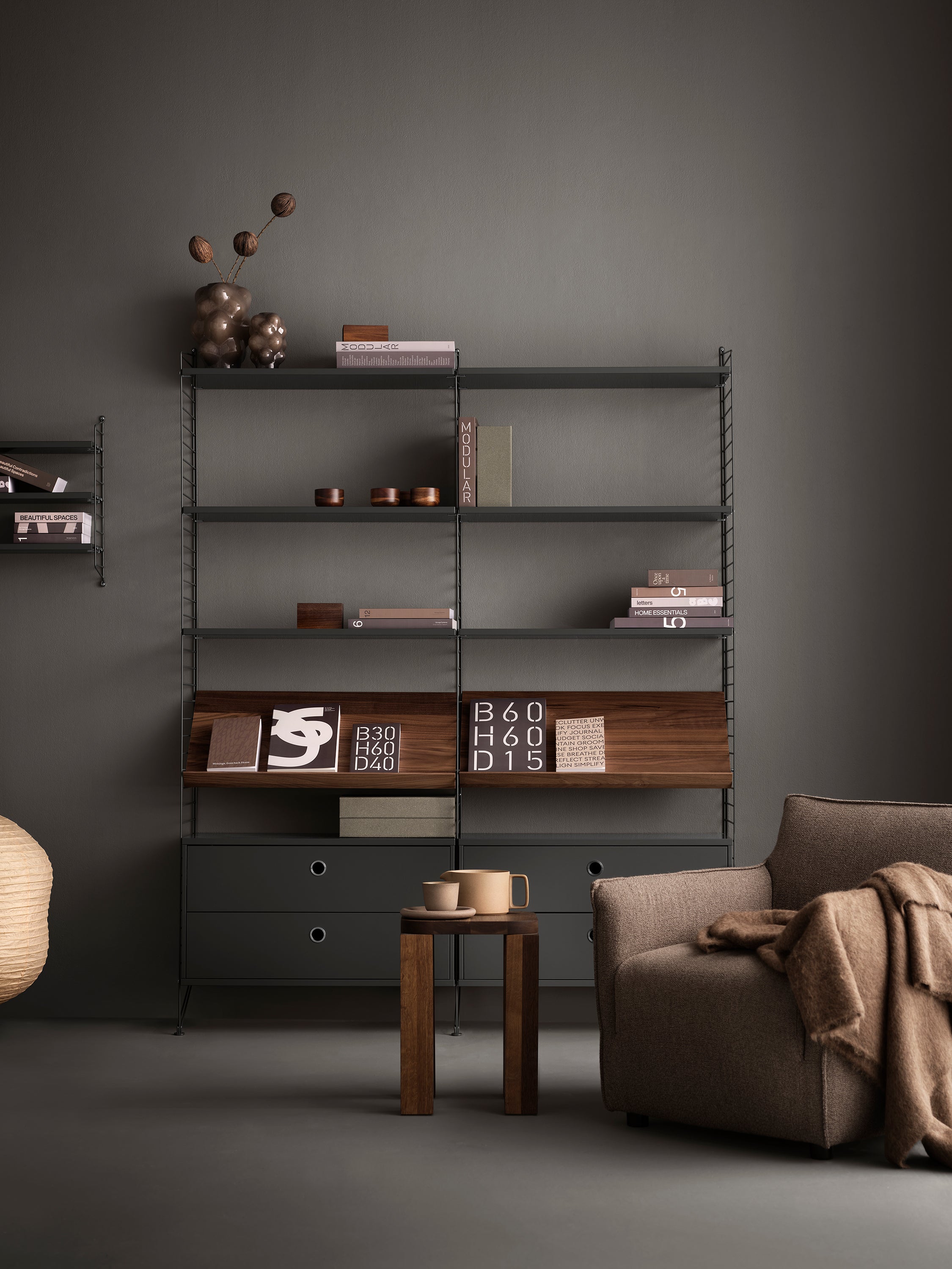 String er like fleksibelt som det er tidløst – perfekt i stue, kjøkken, soverom, kontor eller gang. Du kan designe din egen løsning, eller velge en ferdig kombinasjon.