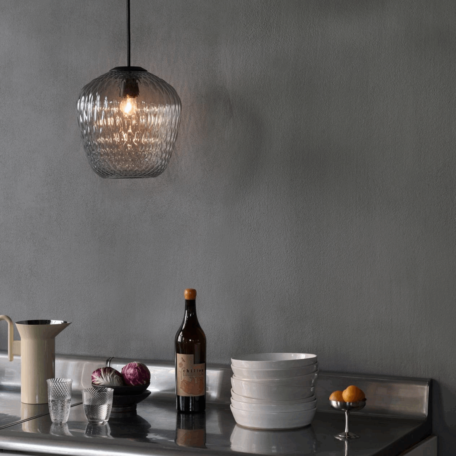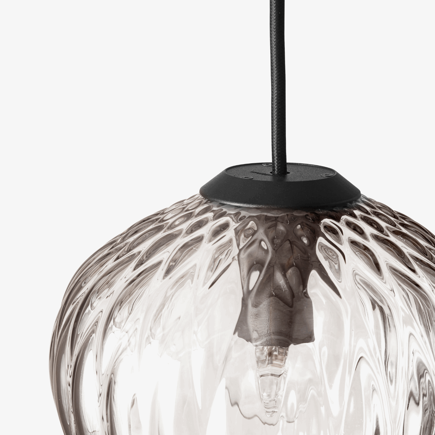 Med sin avrundede form og sofistikerte Silver Lustre-finish, har Blown et tidløst og moderne uttrykk som lett integreres i ulike interiørstiler. Lampen er et eksempel på raffinert håndverk, der glasset blåses for hånd i form, før det kombineres med en pulverlakkert sinkoppheng og sort tekstilledning for en helhetlig og elegant finish.