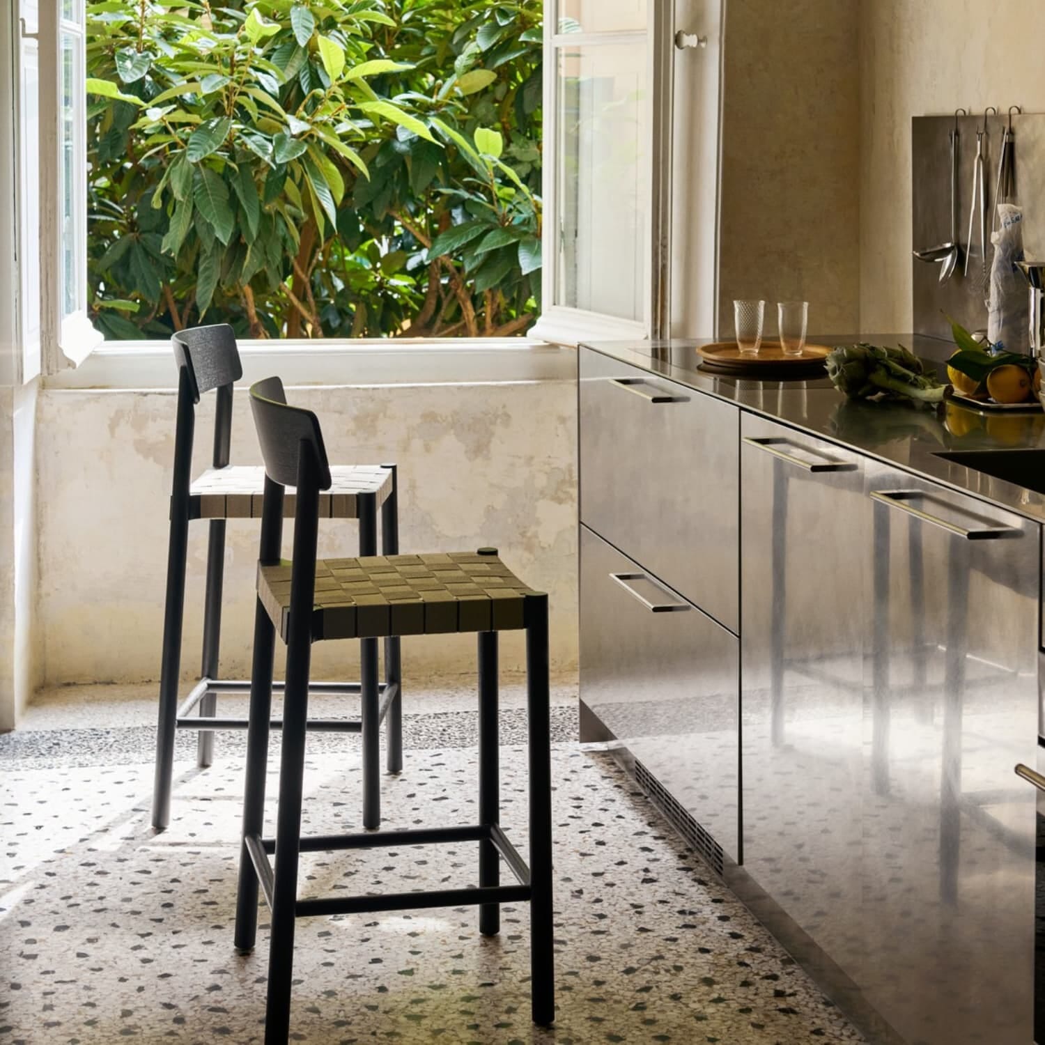 Betty Barstol TK12, designet av Thau & Kallio i 2025, er en elegant videreutvikling av den ikoniske Betty-stolen, tilpasset høyden på kjøkkenbenker og bardisker.