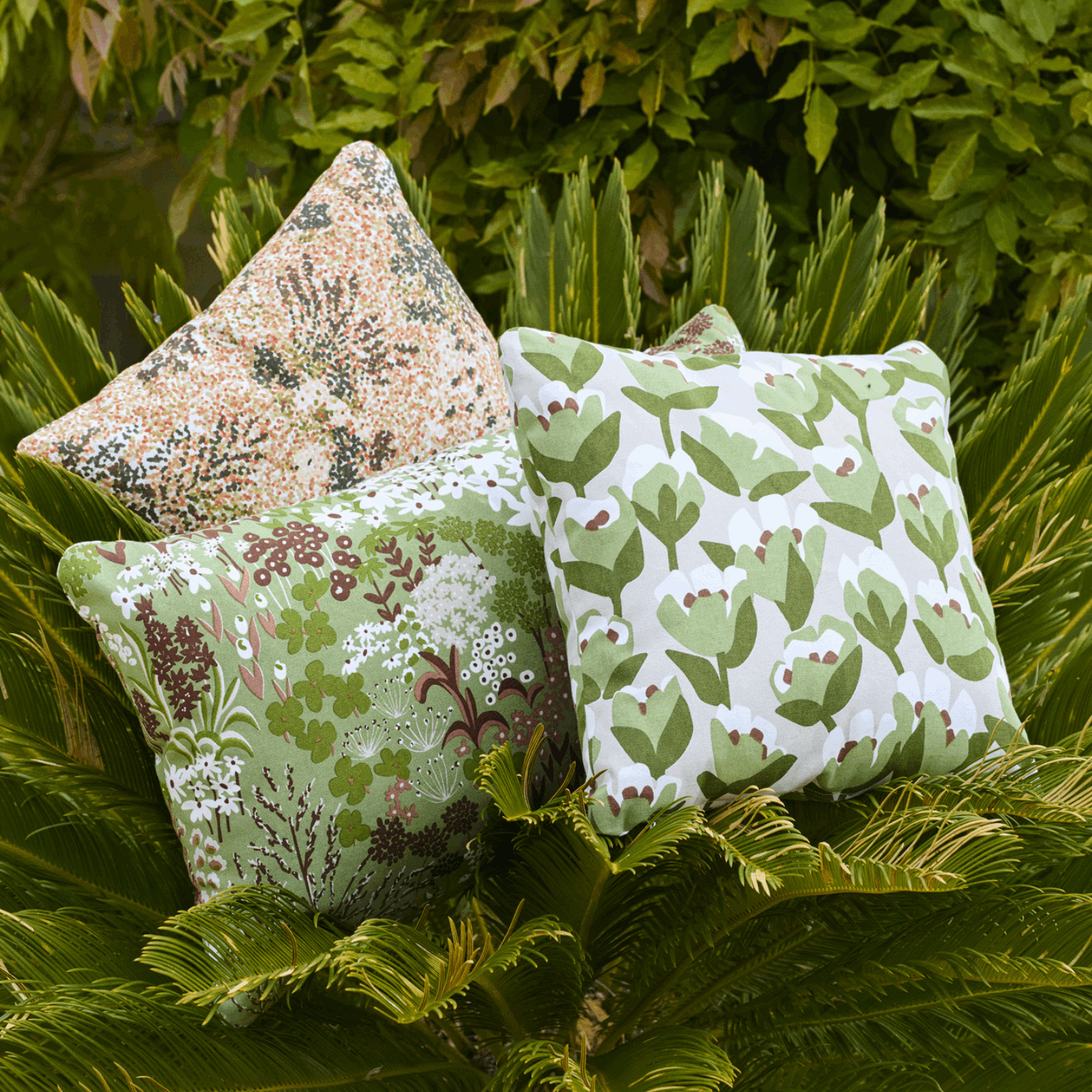 Gi uterommet eller loungen din et fargerikt løft med Bouquet Sauvage Tulipe Autumn utendørspute 44x44 cm.