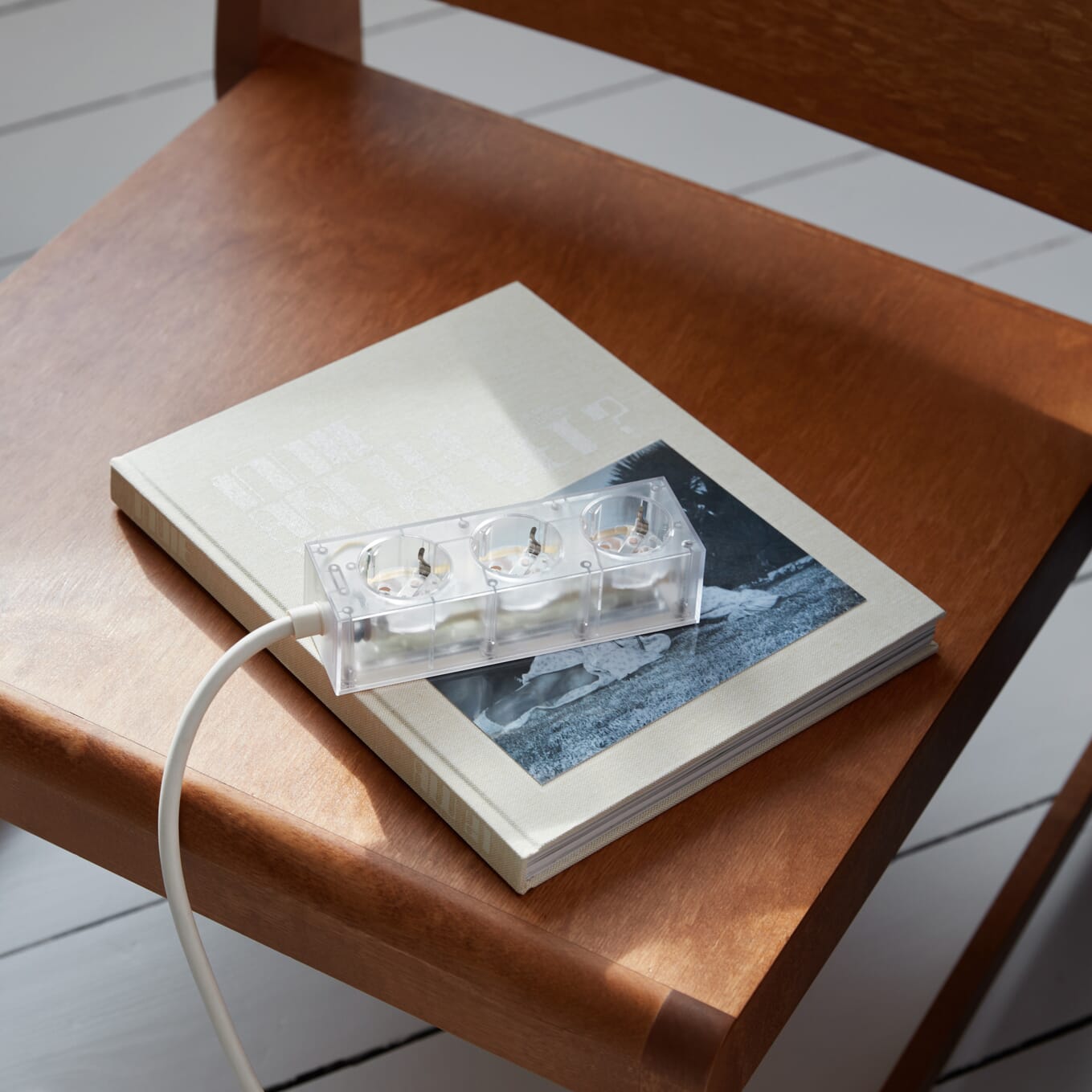 Uttak: 3 Schuko-uttak (CEE 7/3, Type F) med uttakssperre for ekstra sikkerhet.