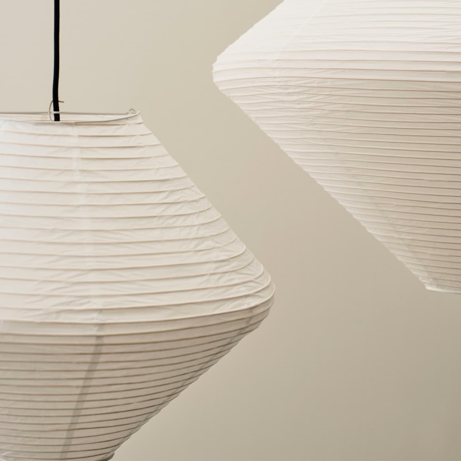 Rispapir Lampeskjerm Diamond Ø80 fra HAY er den største modellen i Paper Shade-serien, og gir et storslått og skulpturelt preg til rommet.