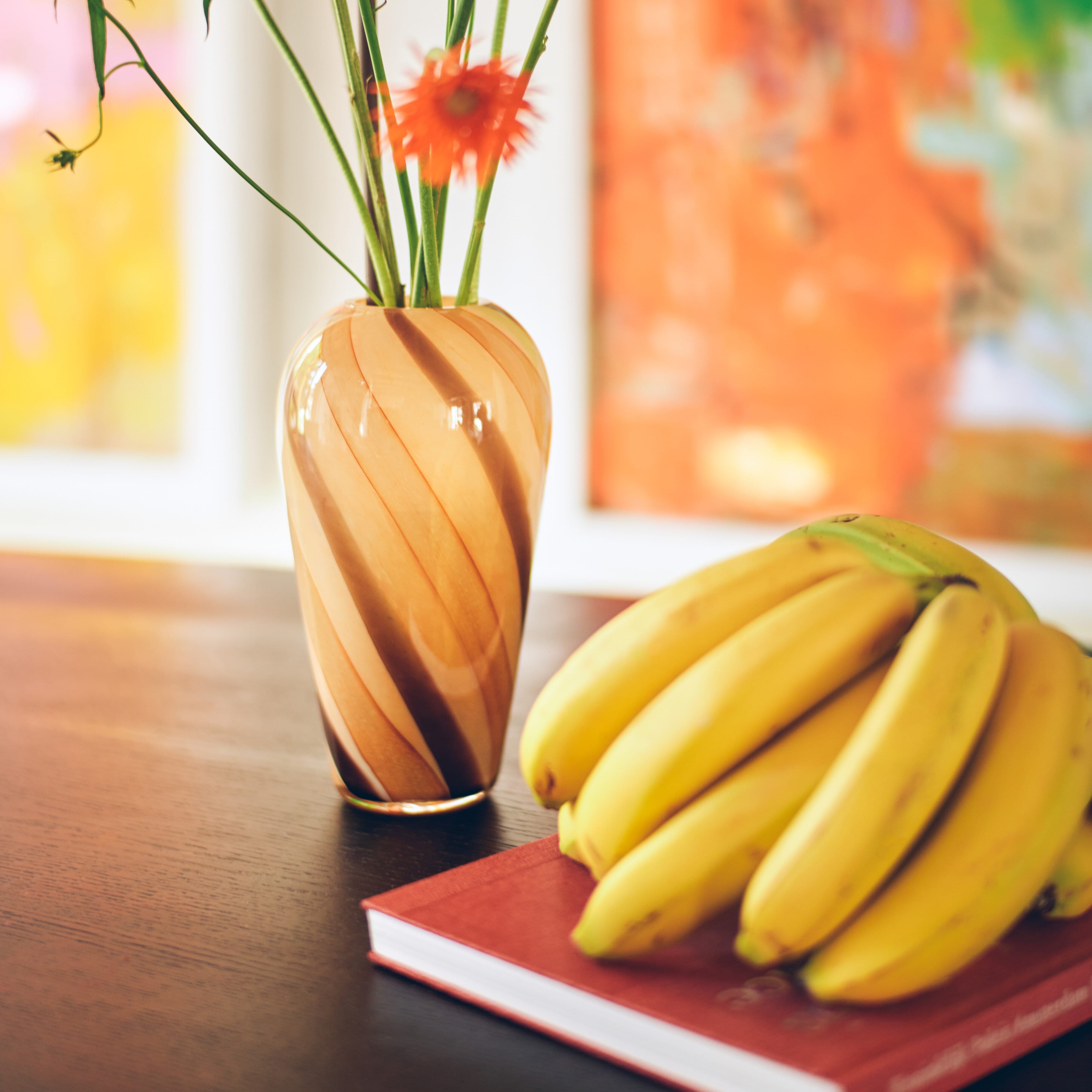Der vintage møter det moderne. Denne glassvasen har et delikat, virvlet mønster og presenterer myke toner som minner om den ultimate sødmen til dulce de leche. En flott tilbehør, eller som vi liker å kalle det, en fryd for øyet.