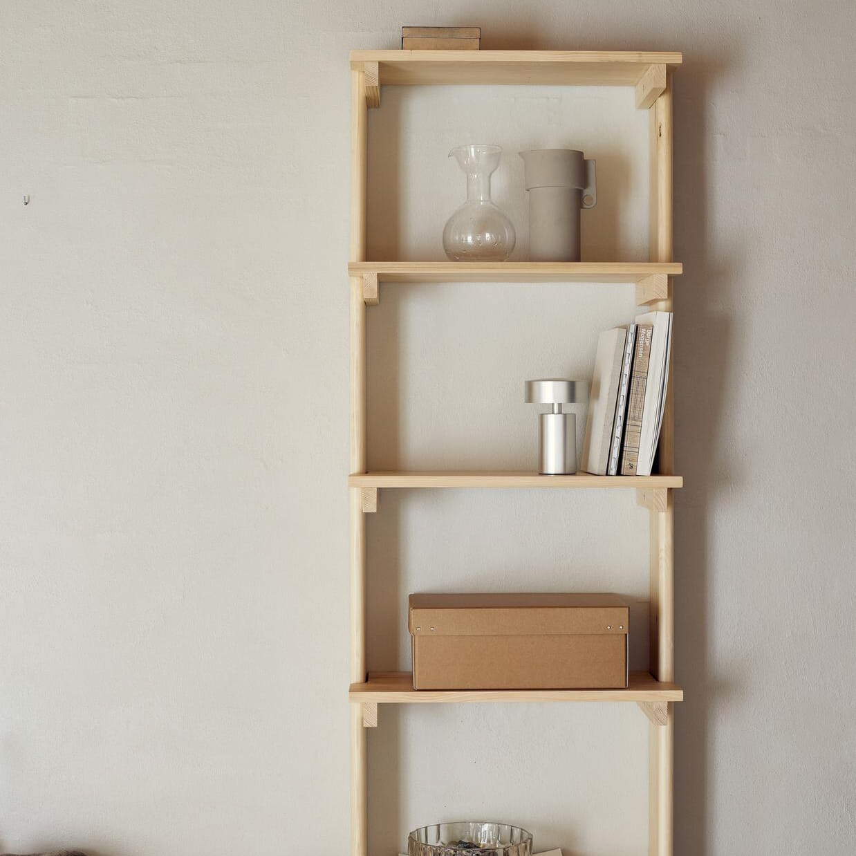 Beam vegghylle fra Form & Refine – en slitesterk og allsidig vegghylle laget av bærekraftig, FSC-sertifisert bosnisk furu. Med sine dype hyller tilbyr den rikelig med plass til oppbevaring eller utstilling av dine favorittgjenstander. Den nederste hyllen kan også fungere som et kompakt skrivebord i trange rom, noe som gjør den ideell for små leiligheter eller hjemmekontor.