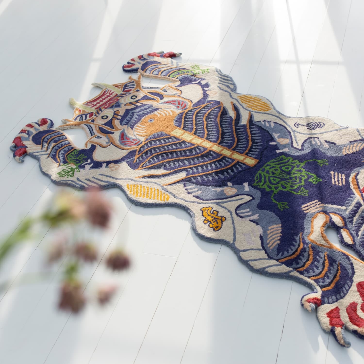 Teppet er håndtuftet i India av dyktige håndverkere, og det unike samspillet mellom slitesterk ull og fargerik kashmir gjør det både robust og behagelig å gå på. Med sin kraftige fargegjengivelse og varme tekstur passer det like godt i entreen, stuen eller på barnerommet – og det er også vakkert som veggteppe.