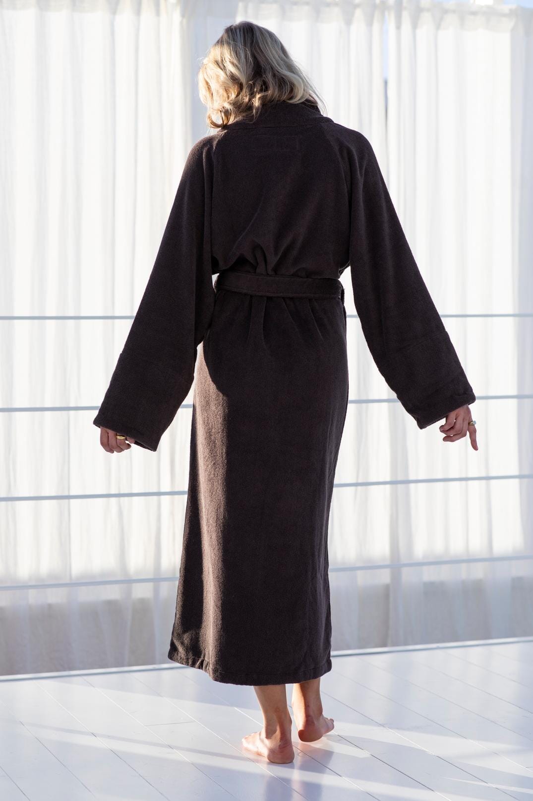 Laget i en kjemmet 385g Oeko-Tex bomull er badekåpen også svært absorberende. Det gjennomtenkte designet har store praktiske lommer, et stort jakkeslag, mykt belte – og den føles bare behagelig og myk å ta på. Du kan bevege armene fritt, enkelt stramme beltet og den er lang nok til å dekke knærne når du setter deg ned.