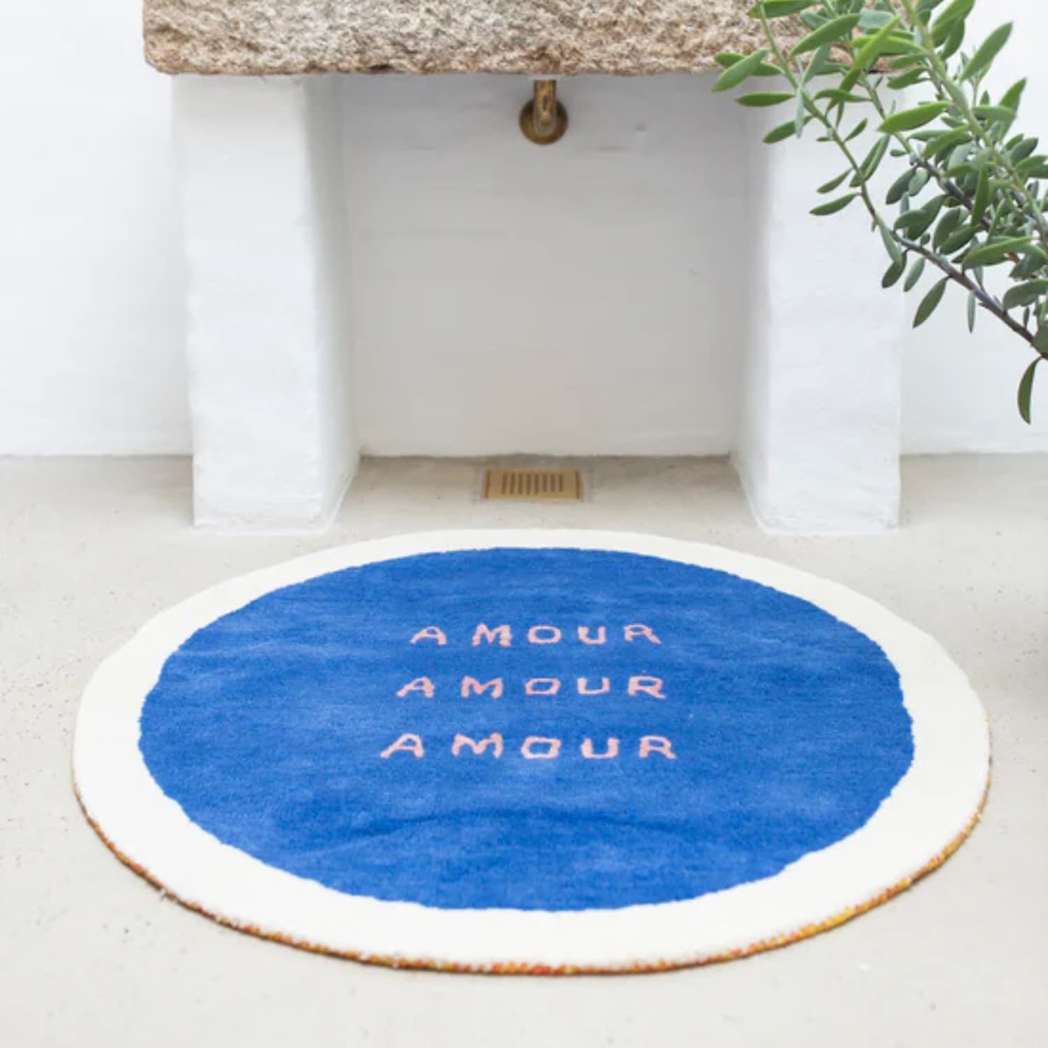 Amour Gulvteppe Ø90 er et lekent og fargerikt innslag til hjemmet, håndvevd i 100 % ull av høy kvalitet.
