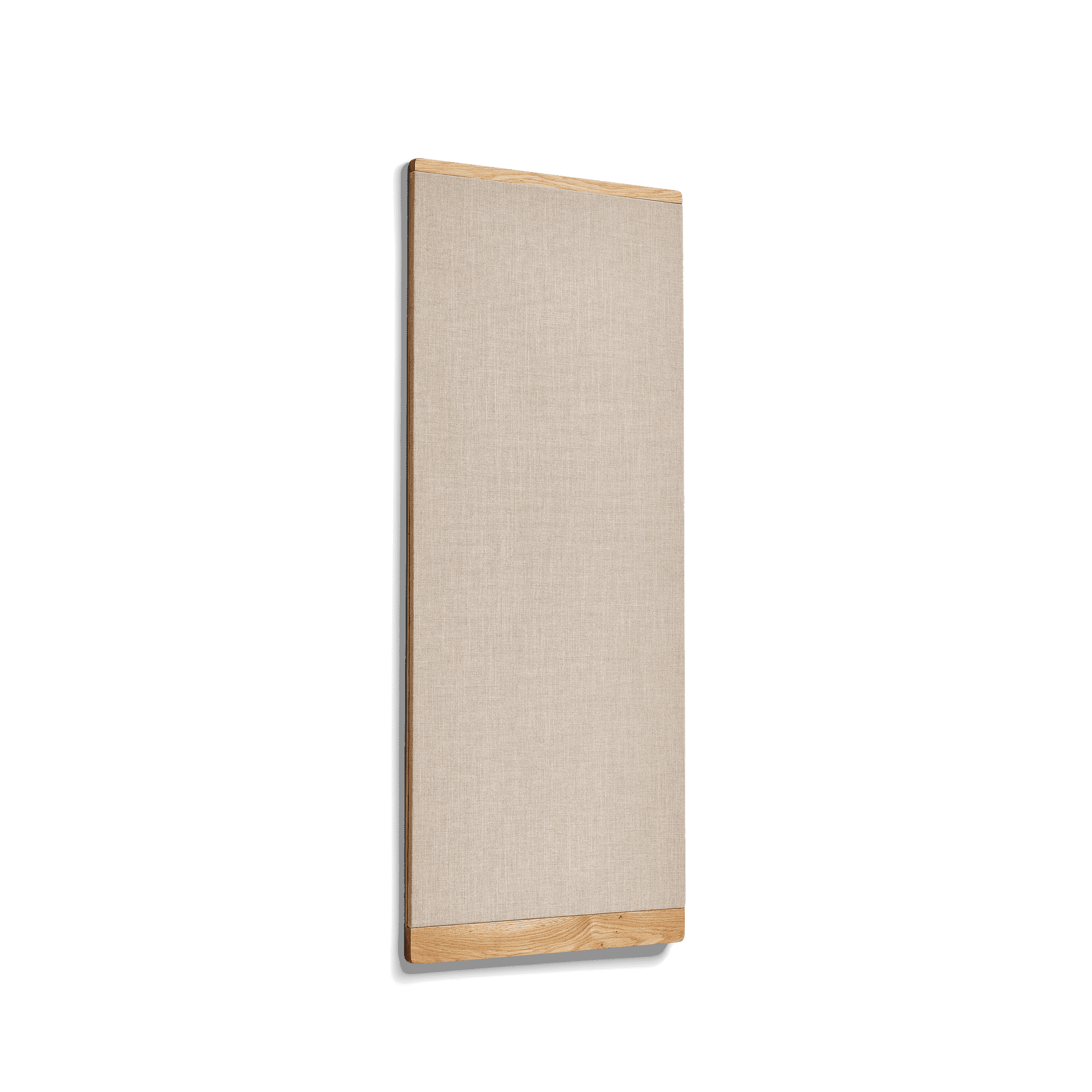 Designerens tanker: "Vi ønsket å lage en oppslagstavle med et varmt og mykt utseende, der stoffet skulle matche varmen i eiken. Rammen på oppslagstavlen har en stor radius på baksiden som løfter den fra veggen med en myk skygge." – Jonas Herman, Herman Studio
