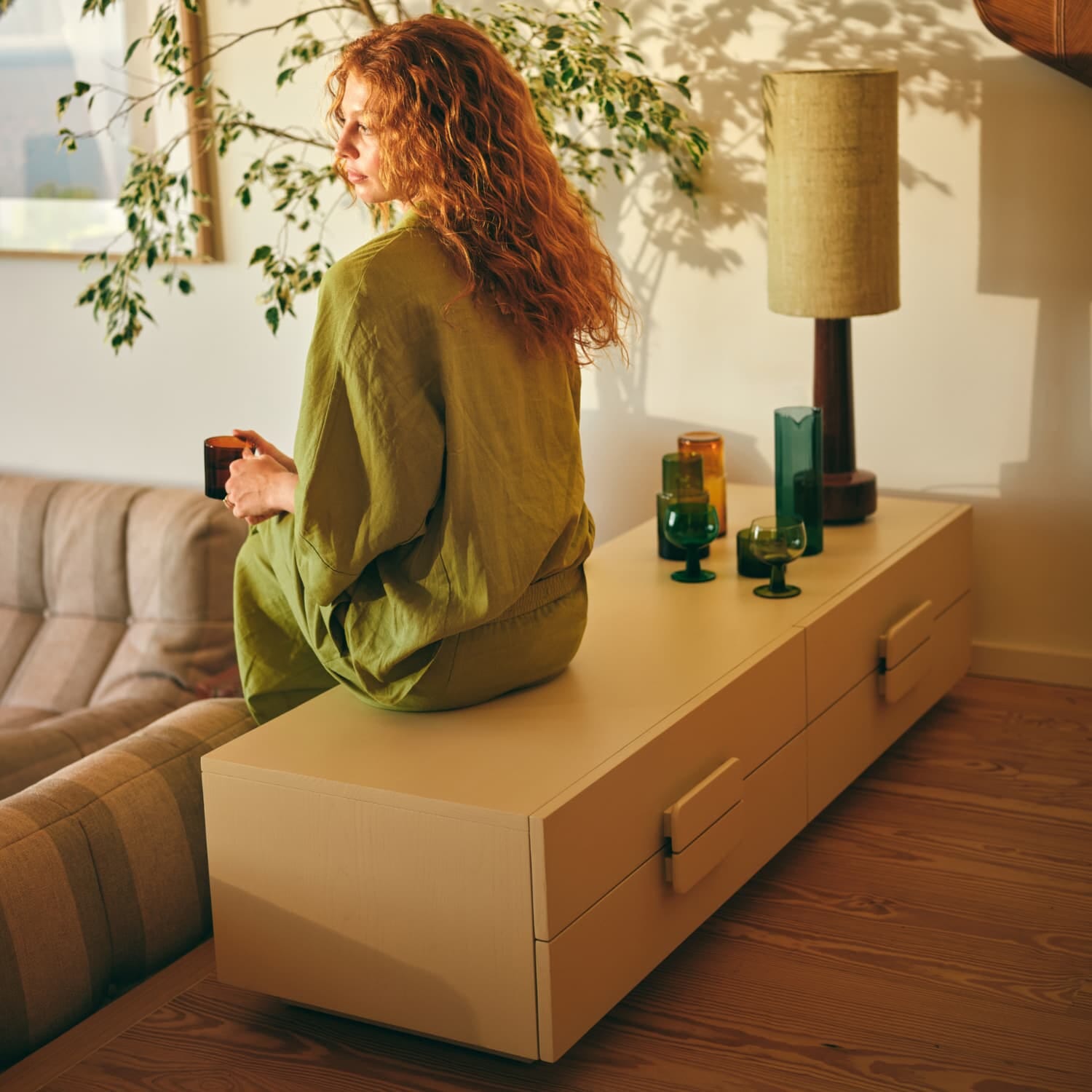 Løft uttrykket i stuen med Spacious Lowboard i en delikat kremfarge – en moderne og funksjonell lav skjenk som kombinerer stilren design med praktisk oppbevaring.
