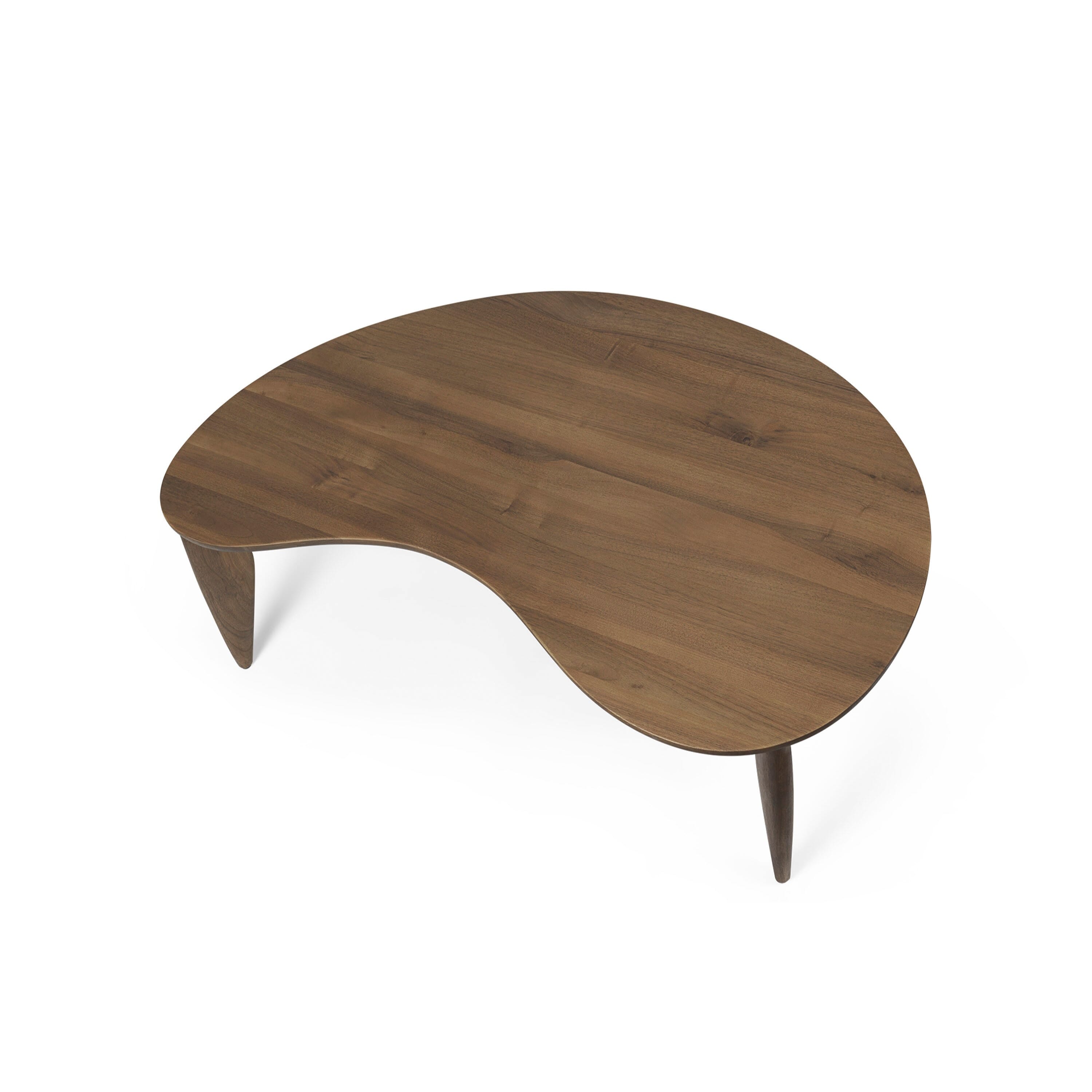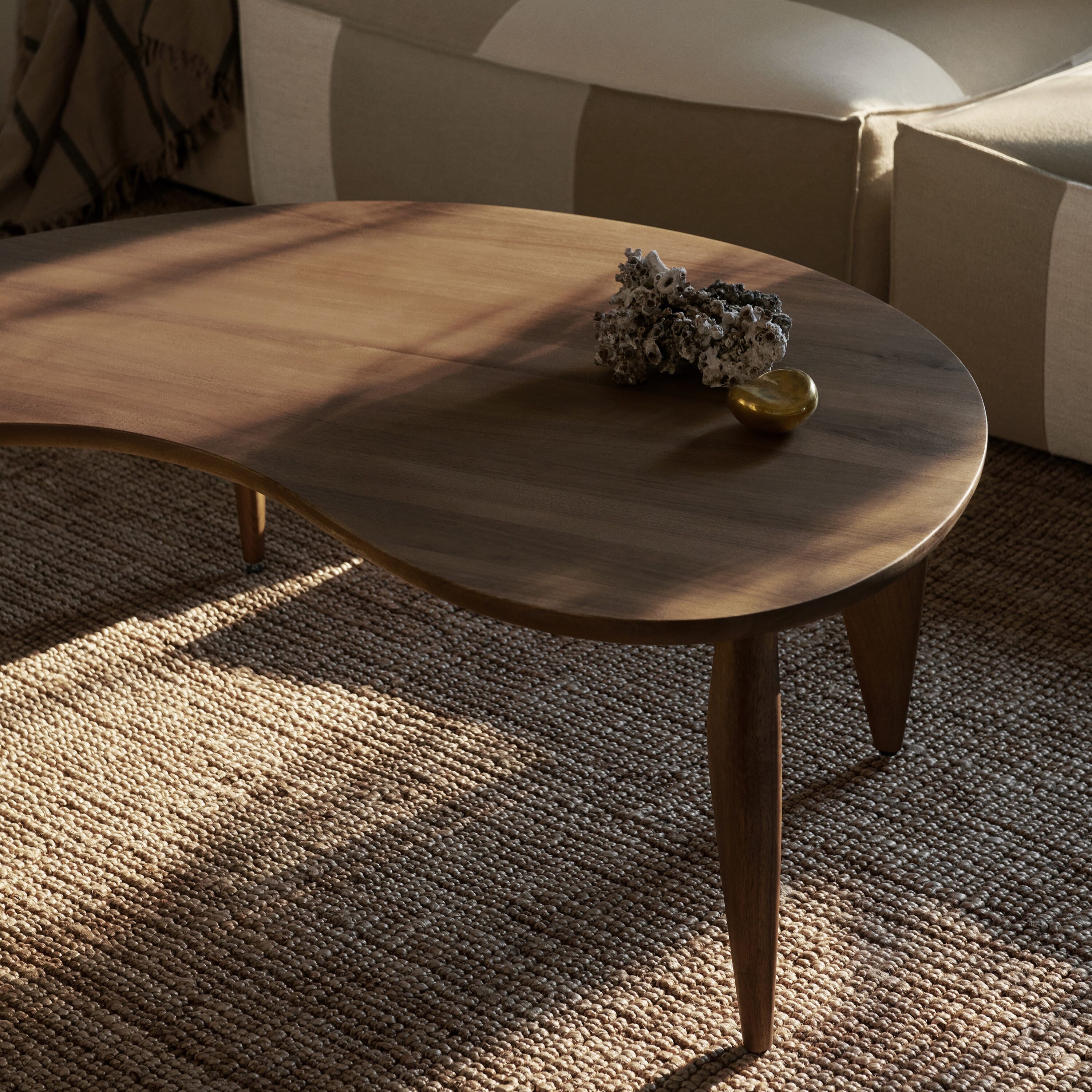 Laget av solid FSC™-sertifisert europeisk valnøtt, har Feve bordet et organisk, delikat uttrykk. Som en referanse til den karakteristiske formen kommer navnet fra det franske ordet Fève, som betyr bønne. Bordets ben er skåret ut i strakte elliptiske former som understreker bordets elegante, feminine silhuett og tilfører balanse til designet, mens justerbare glidere sørger for at bordet alltid er plant.