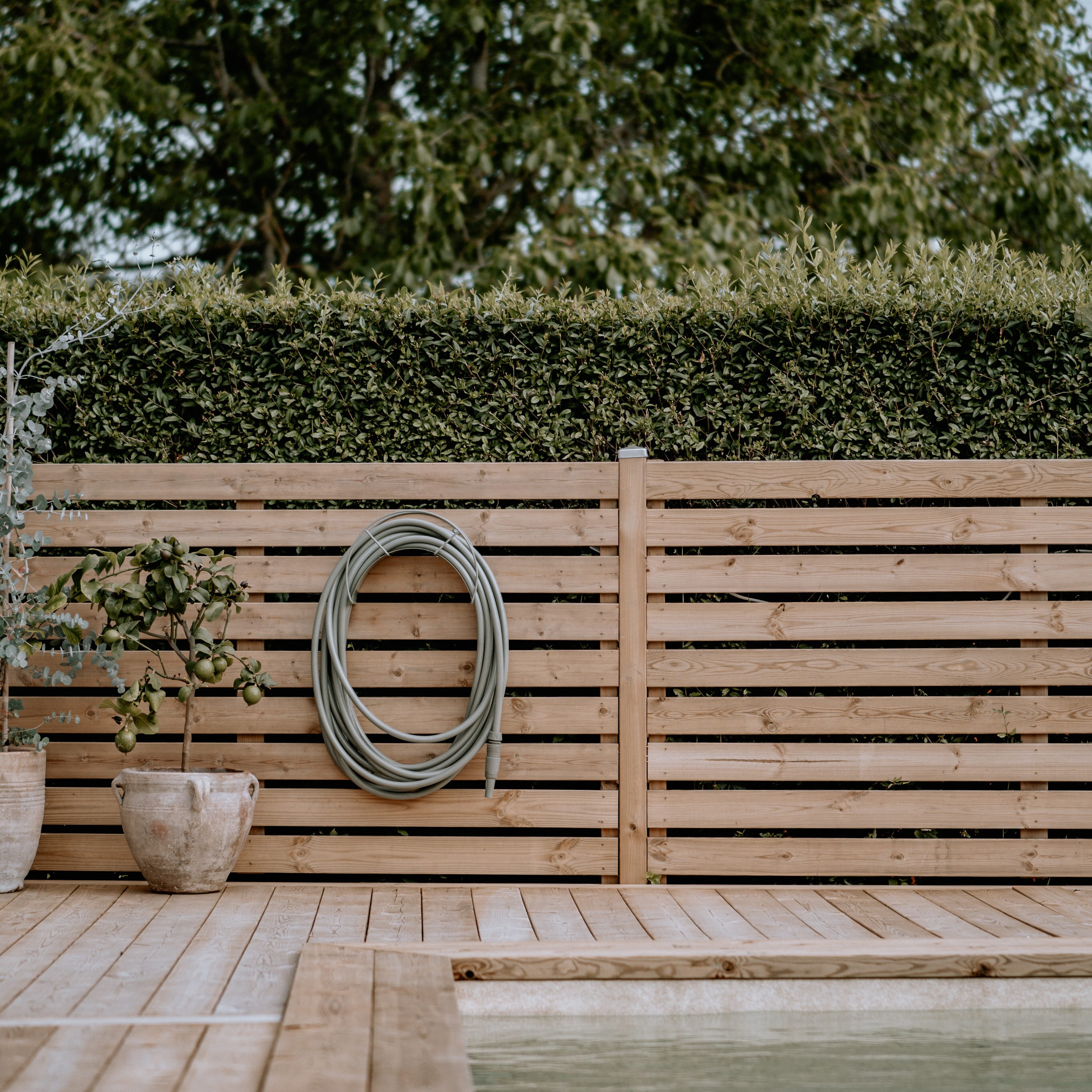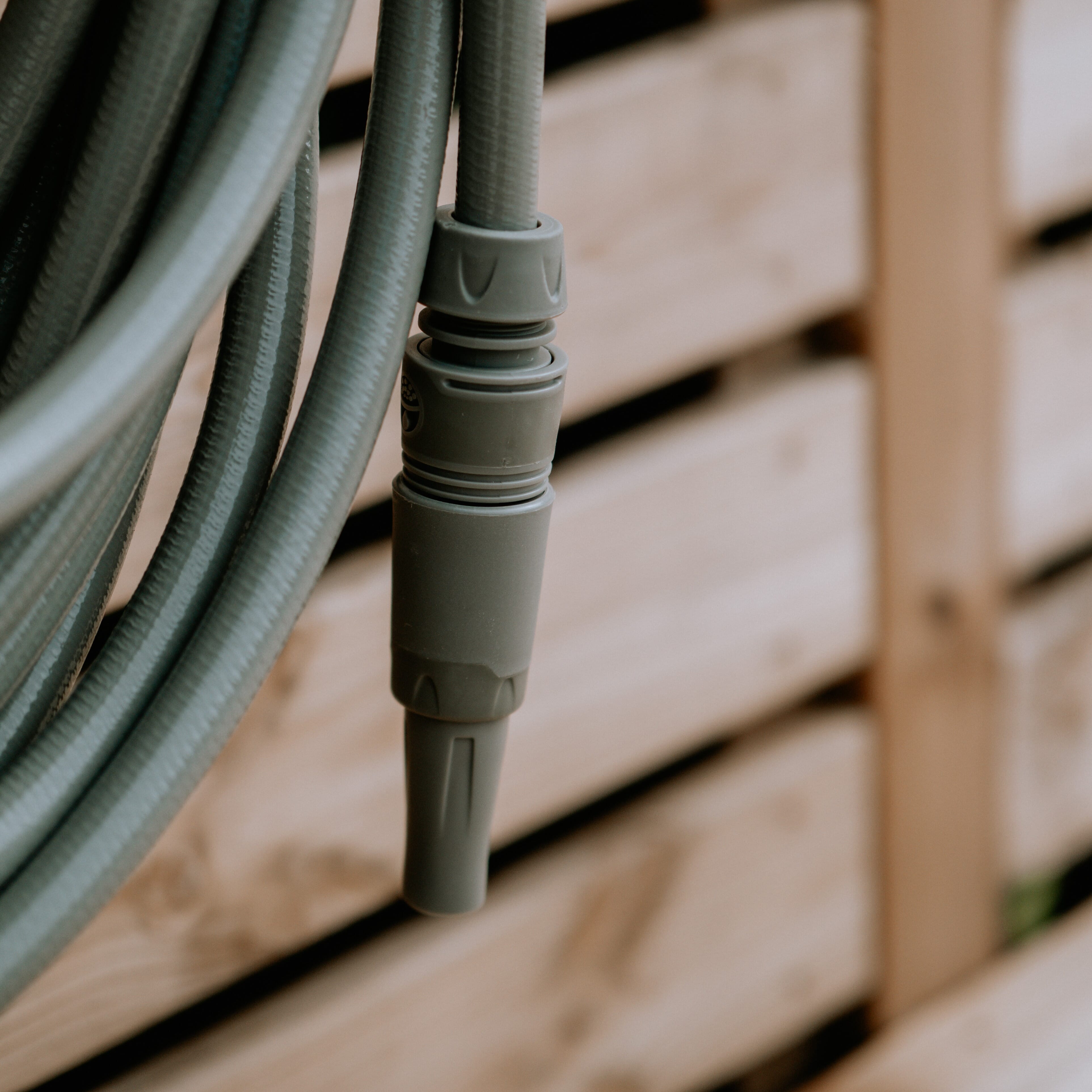 Den ytre plasten har en smussavvisende overflate, og er UV-beskyttet, slik at slangen vil beholde det flotte utseendet år etter år. Alle slanger, munnstykker og veggfester kan kombineres etter eget ønske.