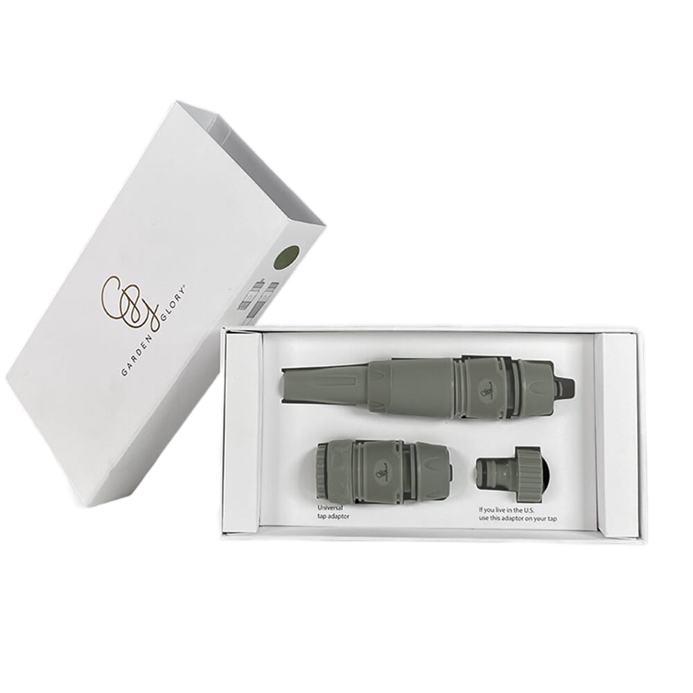 Dysesettet er laget av plast og kompatibel med alle 1/2 ”vannslanger. Bruk de justerbare dysene til å velge stråle, myk dusj eller tåke. Alle kontaktene du trenger for å vanne effektivt og elegant er inkludert.