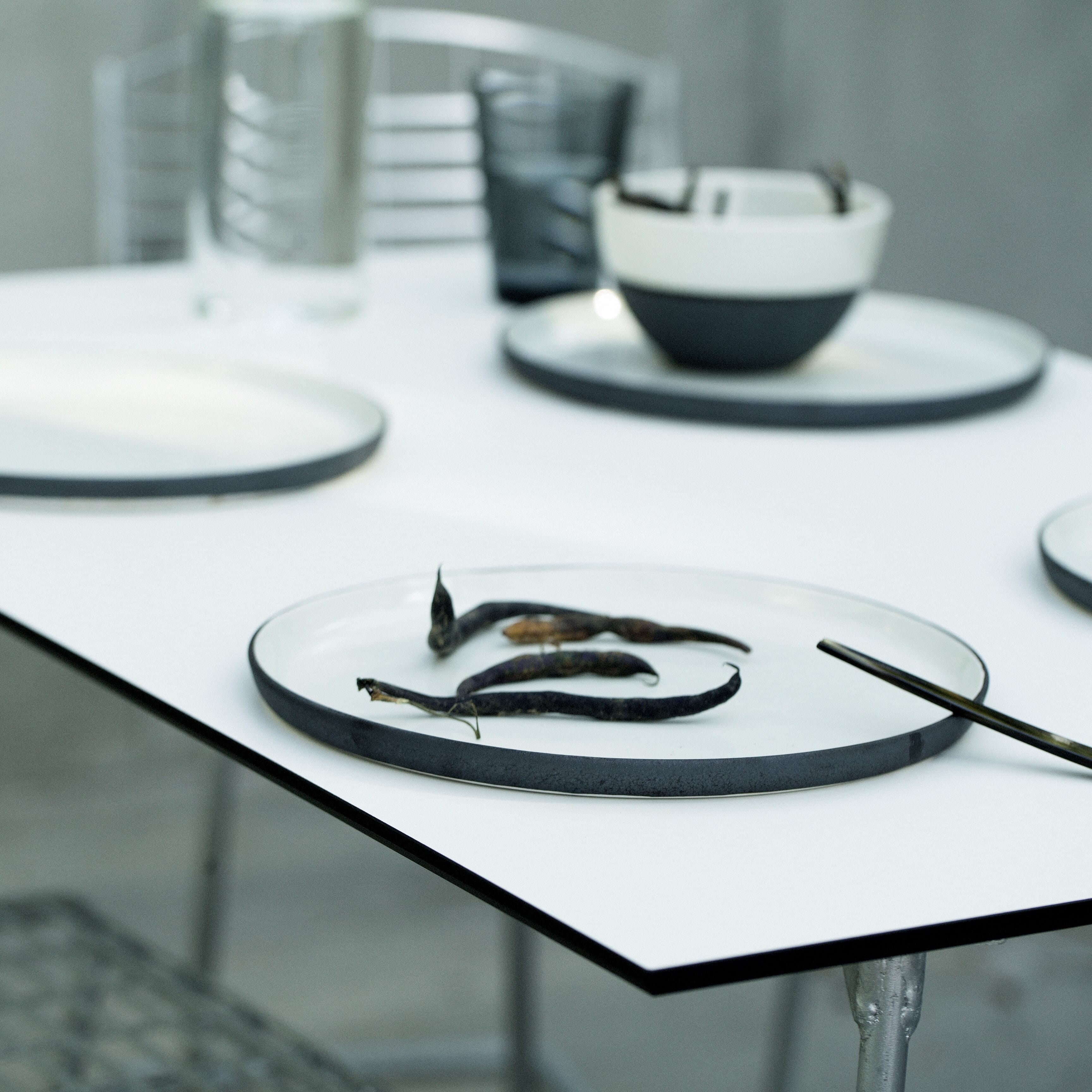 Flott bord fra High Tech-serien til Grythyttan. Bordet er konstruert med en solid stålramme og en plate laget av slitesterkt kompaktlaminat, noe som gjør det ideelt for utendørsbruk og i stand til å motstå alle slags værforhold.