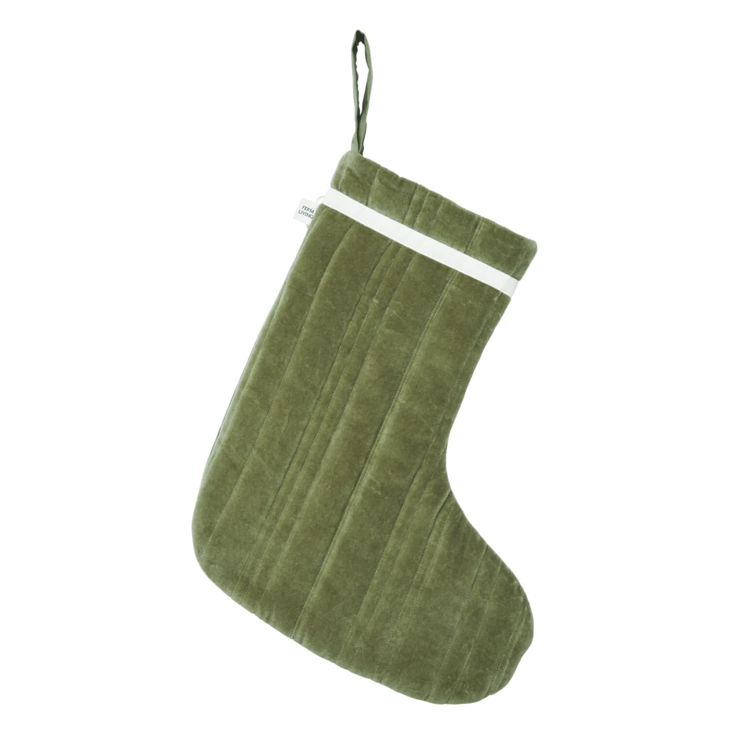 Julestrømpe Vari Velvet Khaki er en elegant og romslig julestrømpe laget i økologisk bomullsfløyel med polstring i resirkulert polyester.
