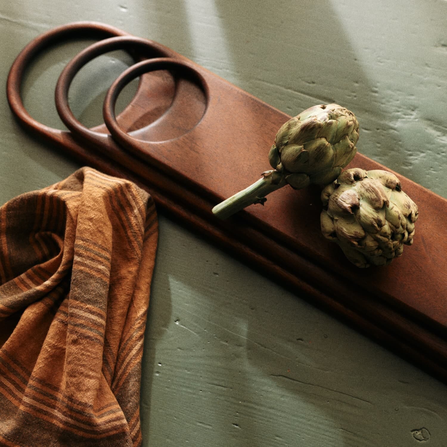 Med sine generøse mål på 60 x 15 cm er det perfekt til alt fra oppskjæring av brød til servering av oster, spekemat og småretter. Laget i 100 % akasietre med en vakker naturlig årestruktur, gir brettet et lunt og organisk uttrykk som passer i ethvert kjøkken. Håndtaket gjør det enkelt å flytte eller henge opp etter bruk, og den solide treoverflaten tåler daglig bruk samtidig som den eldes med stil. Et allsidig og dekorativt redskap for den designbevisste hjemmekokken.
