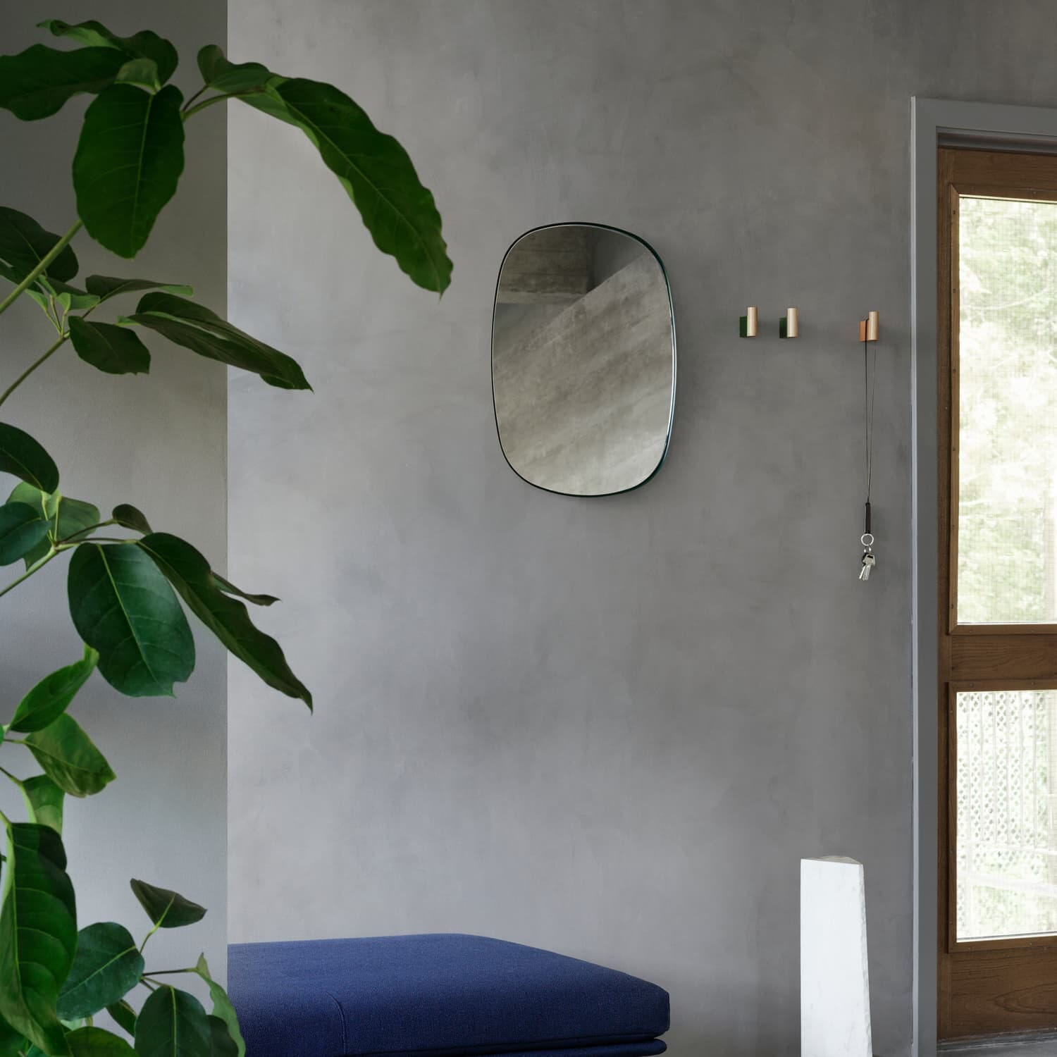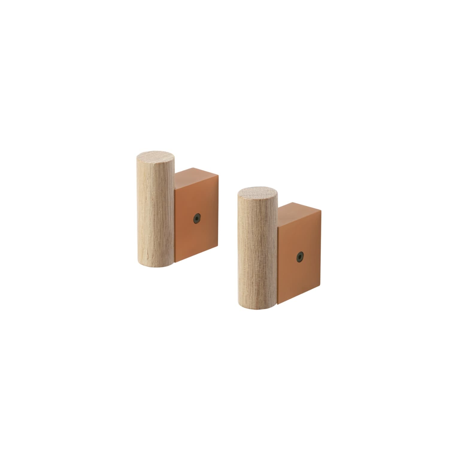 Attach Coat Hook fra Muuto kombinerer enkel skandinavisk eik med industrielt aluminium i en varm brent oransje nyanse.
