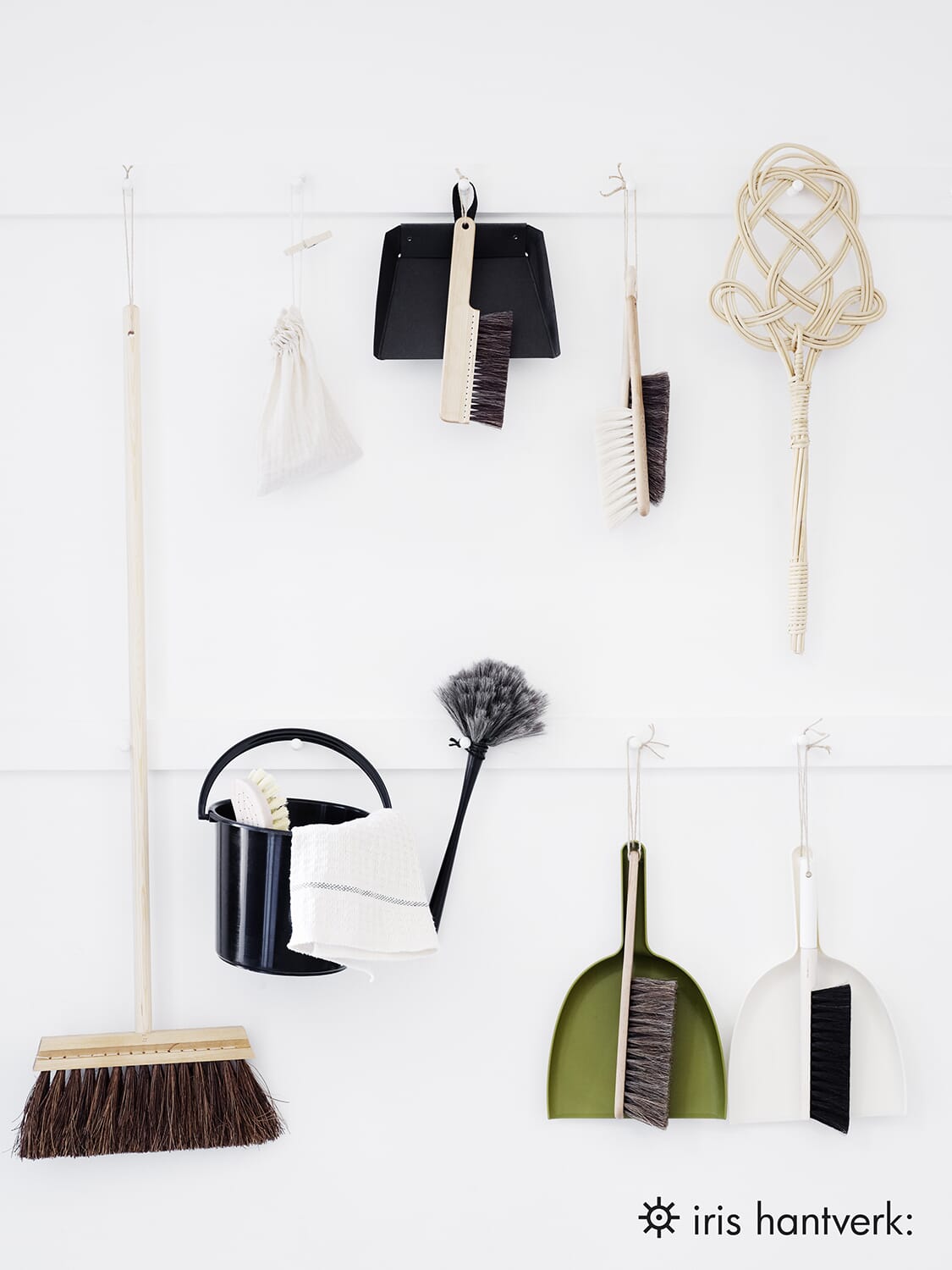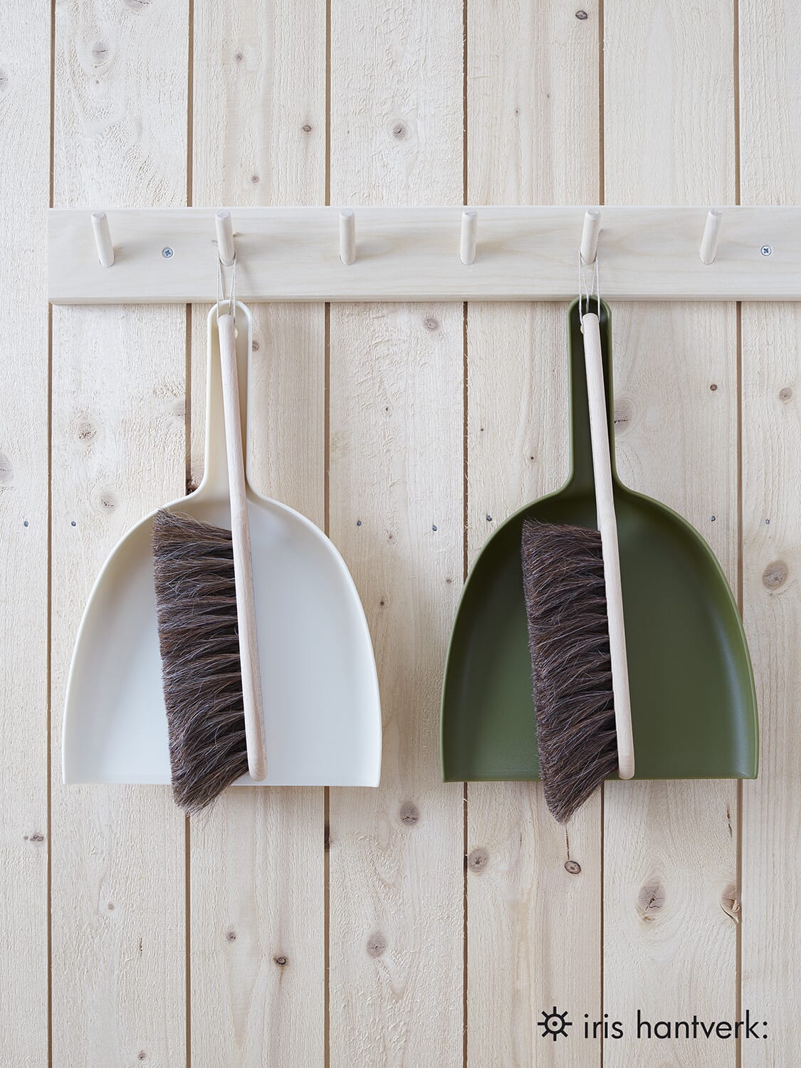 Stilig og praktisk feiesett fra Iris Hantverk. Børsten er håndlaget med buster av hestehår, skaftet er laget av oljet bøk, og brettet er laget av bio-polyetylen. De naturlige bustene feier effektivt opp smuler og sand. Passer til både innendørs og utendørs bruk.