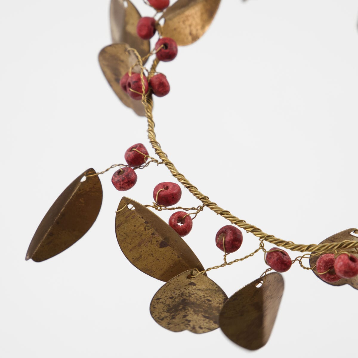 Når det gjelder tradisjonell juledekor, er det få ting som kan konkurrere med en vakker krans. Gi hjemmet ditt en koselig atmosfære med denne håndlagde kransen fra House Doctor, satt sammen med gyldne messingblader og varme, røde treperler. Med denne klassiske elegansen blir hjemmet ditt klart for å hylle høytidens samvær og glede. Heng kransen på veggen eller i et vindu for å skape den perfekte julestemningen og tilføre litt magi til din juleinnredning.