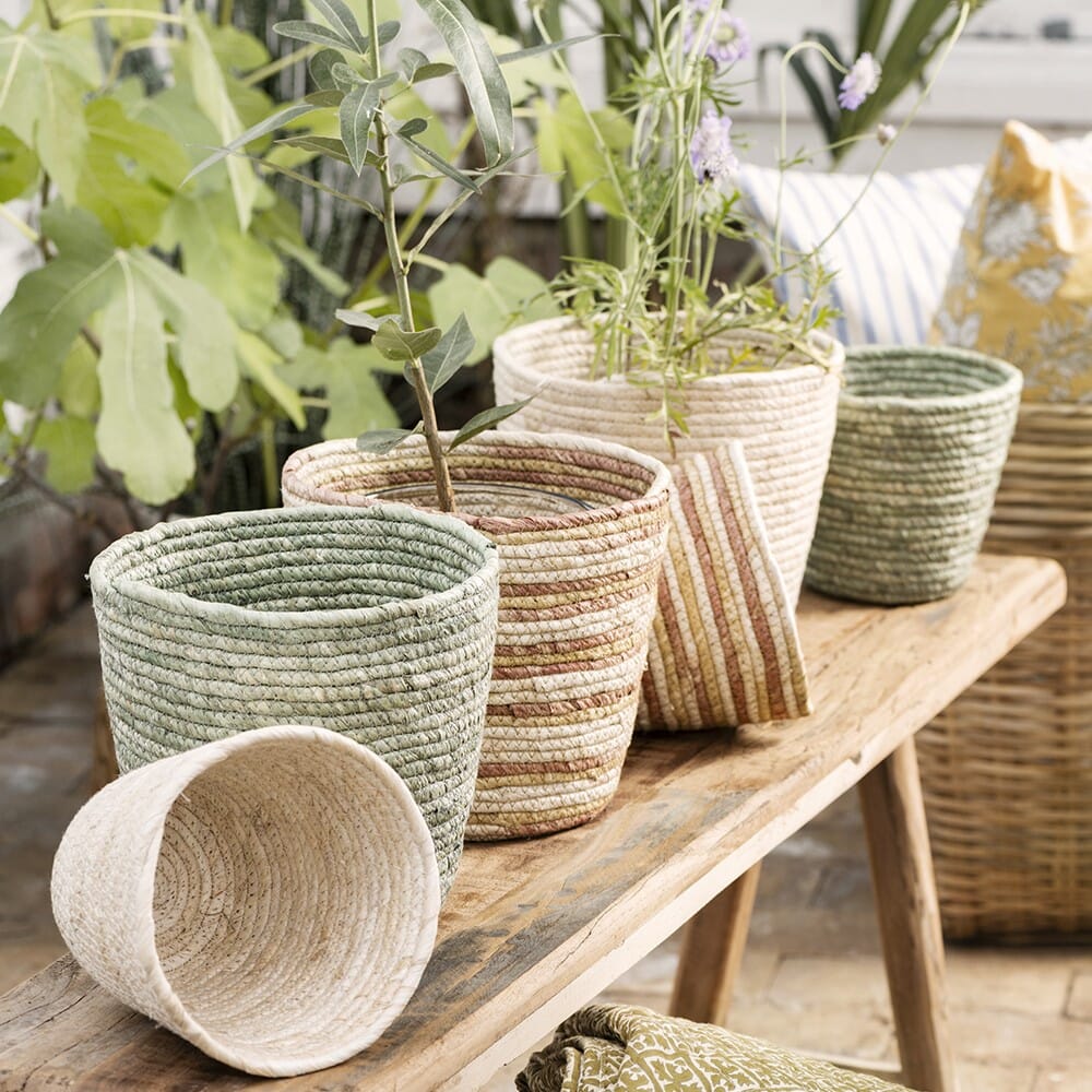 Denne vakre kurven fra danske IB Laursen er laget av maisblader og har en herlig lys kremfarge som gir den en elegant utstråling. Den kan enkelt kombineres med andre farger og brukes både som en dekorativ beholder for planter eller som en praktisk kurv for oppbevaring av småting.
