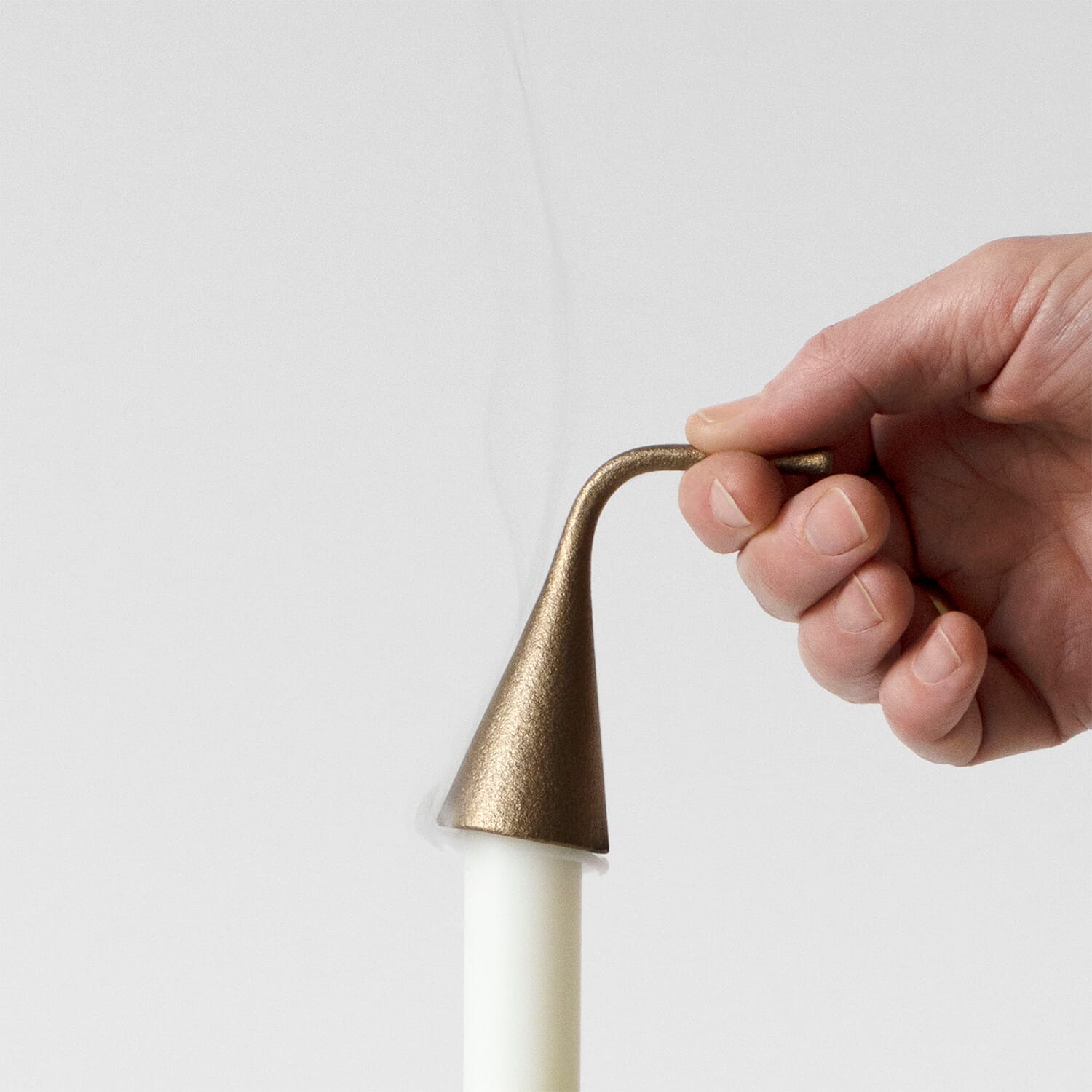 Sammu er en lyseslukker i støpt messing tegnet av Julie og Mika Tolvanen fra Finland for Anderssen & Voll- og: denne blir støpt rett utenfor Haugesund!