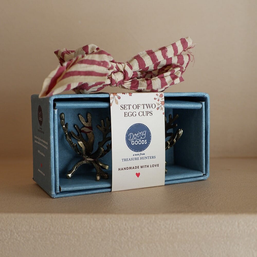 Eggeglassene er håndlaget i India. På grunn av den håndlagde naturen til dette produktet, kan det forventes små variasjoner i utseendet på hvert element. Ikke perfekt på noen måte, men unik desto mer!