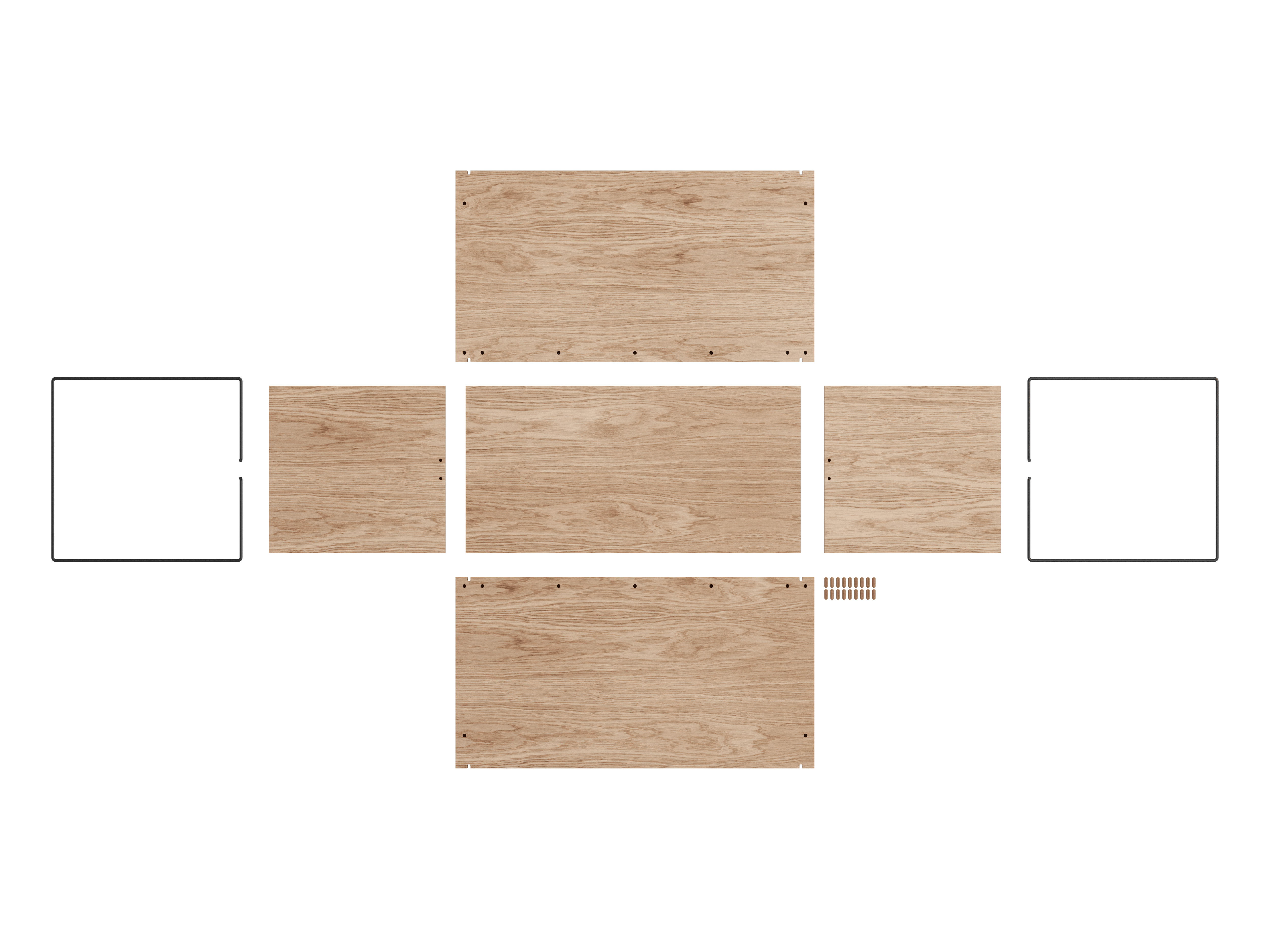 Storage Box kan brukes i alle rom, til alt fra magasiner, tomflasker, som nattbord eller til leker. De lekre kassene er laget i eik og blir lett en fin del av interiøret ditt. Storage Box er romslig med en kapasitet på 47 L. Det er et komponentbasert design som kommer flatpakket, du montere det selv og demonteres lett etter behov. De to firkantede metallrammene er det som låser boksen sammen mens de også fungerer som håndtak for å bære. Bruk de enkeltvis eller stable flere sammen. Legg dem flate eller stående. Vi anbefaler å stable maksimalt tre bokser.
