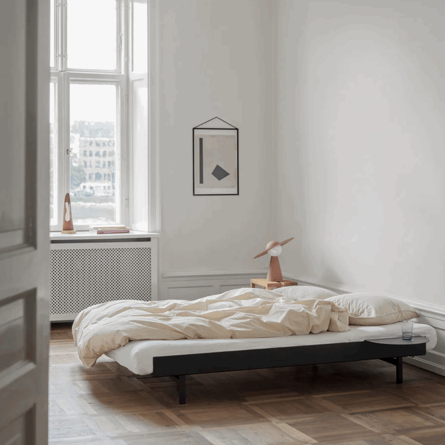 Uansett hvilken størrelse på seng du ser etter, hvorfor ikke velge en som kan gjøre alt? MOEBE-sengen er fullt utvidbar og passer til hvilken som helst madrass fra 90 cm til 180 cm. Den minimalistiske rammen er laget av pulverlakkert stål og kan kjøpes med eller uten sengebunner.