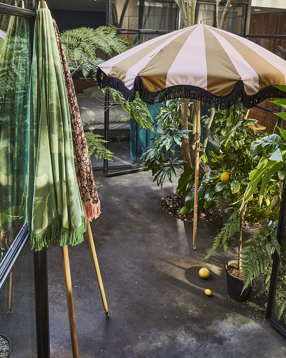 Denne kule parasollen er et samarbeid mellom DORIS (en kjent vintageinspirert influenser i Nederland) og HKLIVING.