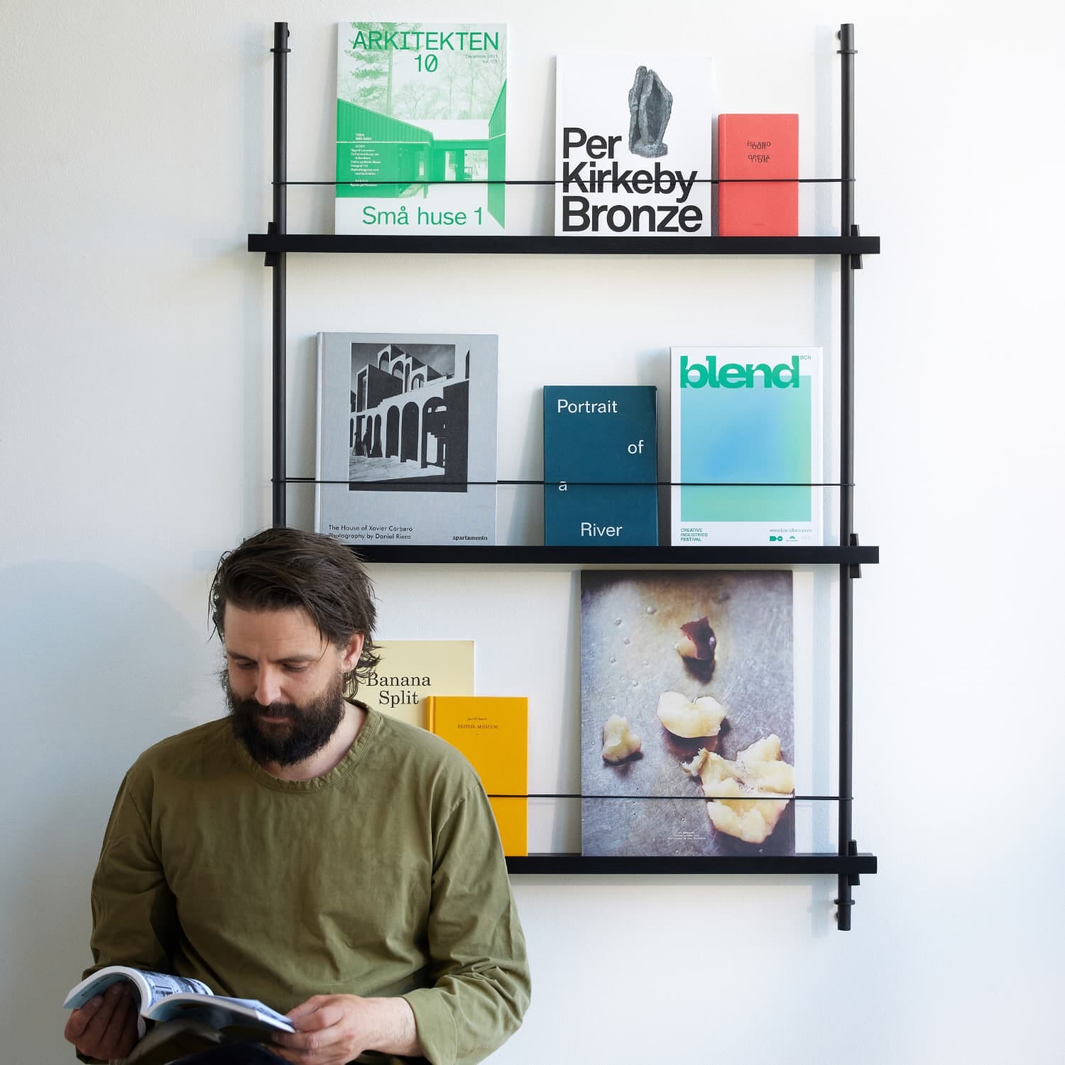 Denne hyllen er en del av MOEBEs ikoniske modulbaserte system og kombinerer slank, pulverlakkert stål med FSC-sertifisert eikefinér. Med tre horisontale magasinhyller får du et perfekt utstillingssted for bøker, magasiner eller kunstbøker, samtidig som det tilfører karakter til veggen. Det tidløse designet gjør den ideell både i hjem, kontor eller kreative miljøer, og systemet kan enkelt bygges ut eller tilpasses etter dine behov.