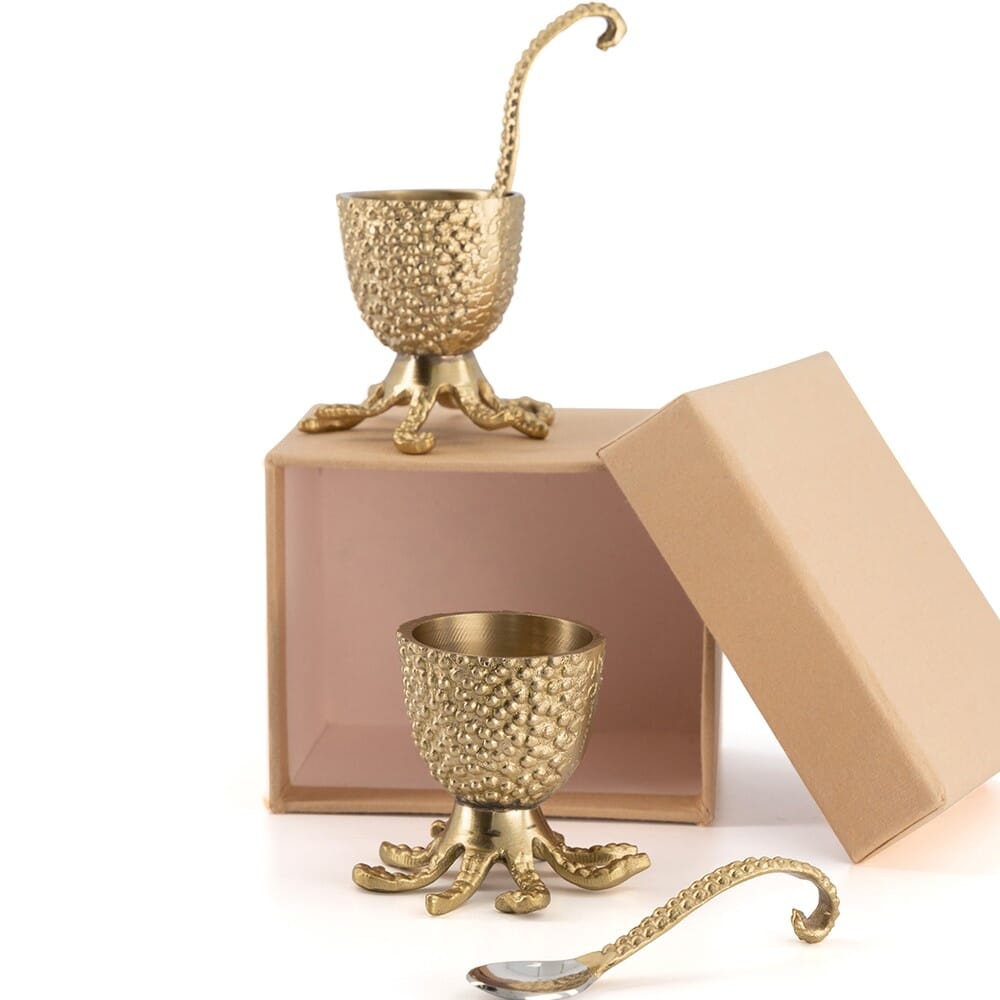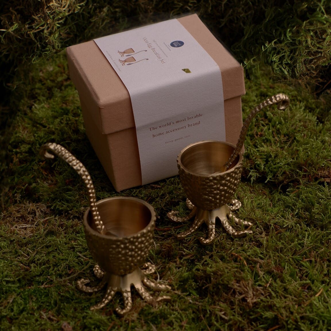 Et sjarmerende frokostsett med bestselgende Octo eggeglass. Disse to eggeglassene og matchende eggeskjeer med sin ekstraordinære form er en absolutt blikkfang på frokostbordet ditt. Vakkert pakket inn i en rosa pastellboks, laget av resirkulert bomullspapir.
