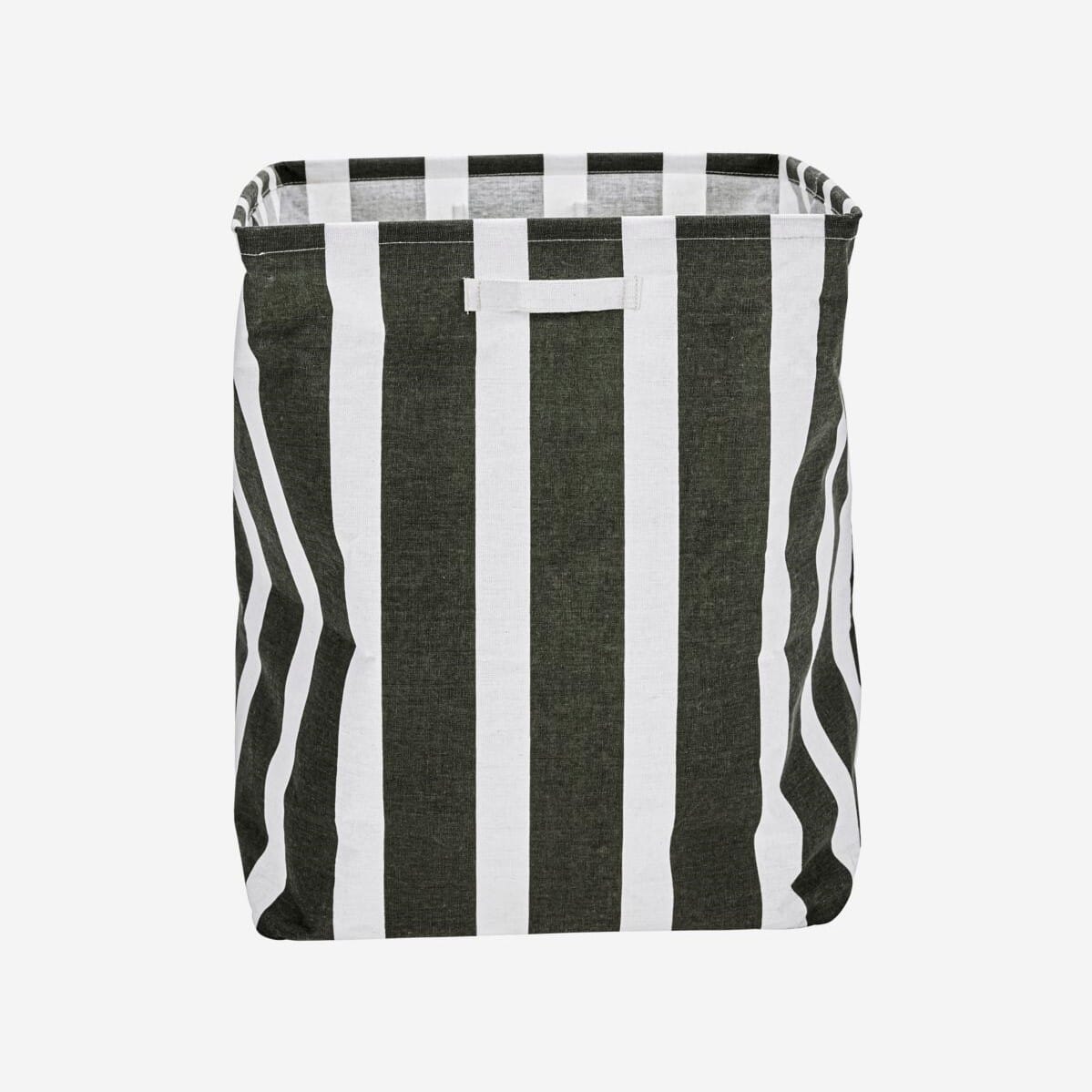 Tid til å rydde og organisere. Oppbevaringskurven fra House Doctor passer inn hvor som helst i hjemmet ditt. Med de grønne stripene er denne stoffkurven et casual innslag i hyllene eller skapet ditt. Stoffet er solid nok til å få kurven til å stå av seg selv, men lett nok til å legges sammen for enkel oppbevaring, og for å spare plass når den ikke er i bruk.
