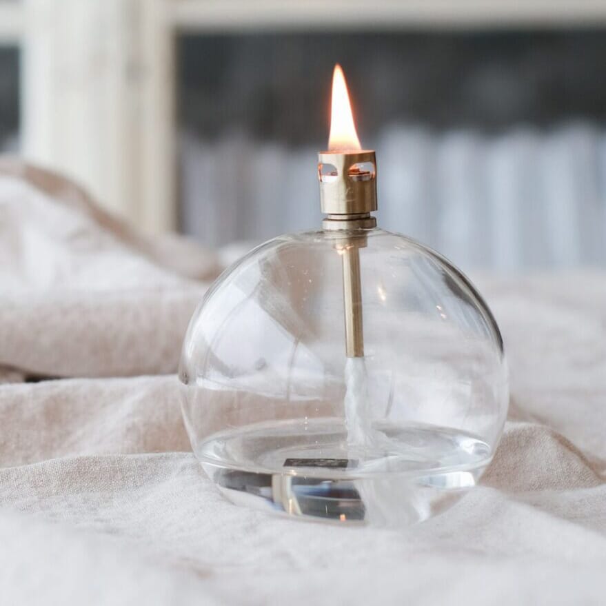 Vakker oljelampe fra Peri Design formet som en ball. Du trenger bare fylle på lampeolje. Da påfyllingshullet er veldig smalt, så anbefaler vi å bruke påfyllingstrakten.