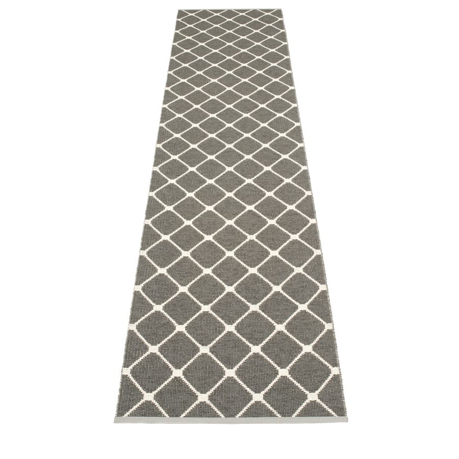 Slitesterk kvalitetsmatte med stilig design fra svenske Pappelina. Den passer til alle rom og holder seg like fin i årevis, du kan til og med bruke den utendørs! Alle mattene veves i Dalarna i Sverige og representerer et stykke svensk håndverkstradisjon. Matten kan brukes på begge sider, tåler vann og kan ligge på varmekabler. I tillegg er den allergivennlig, laget av resirkulerbar plast og helt fri for skadelige kjemikalier. Tørkes enkelt over med en klut eller vaskes i maskin på 30° og drypptørkes.
