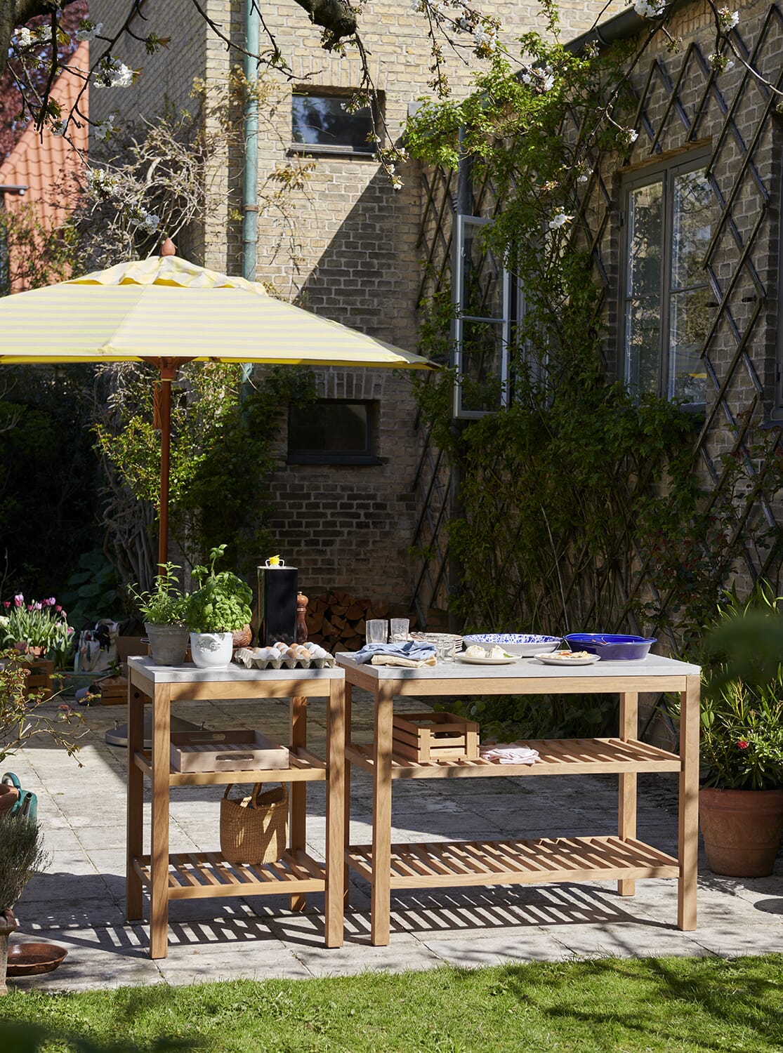 For å feire Drachmann-benkens 40-årsjubileum har Skagerak oppdatert Messina med fargerike striper for å gi et nytt uttrykk til den klassiske parasollen. Beskytt deg mot solen og hold deg kjølig under denne firkantede parasollen og nyt uteplassen til det fulle.
