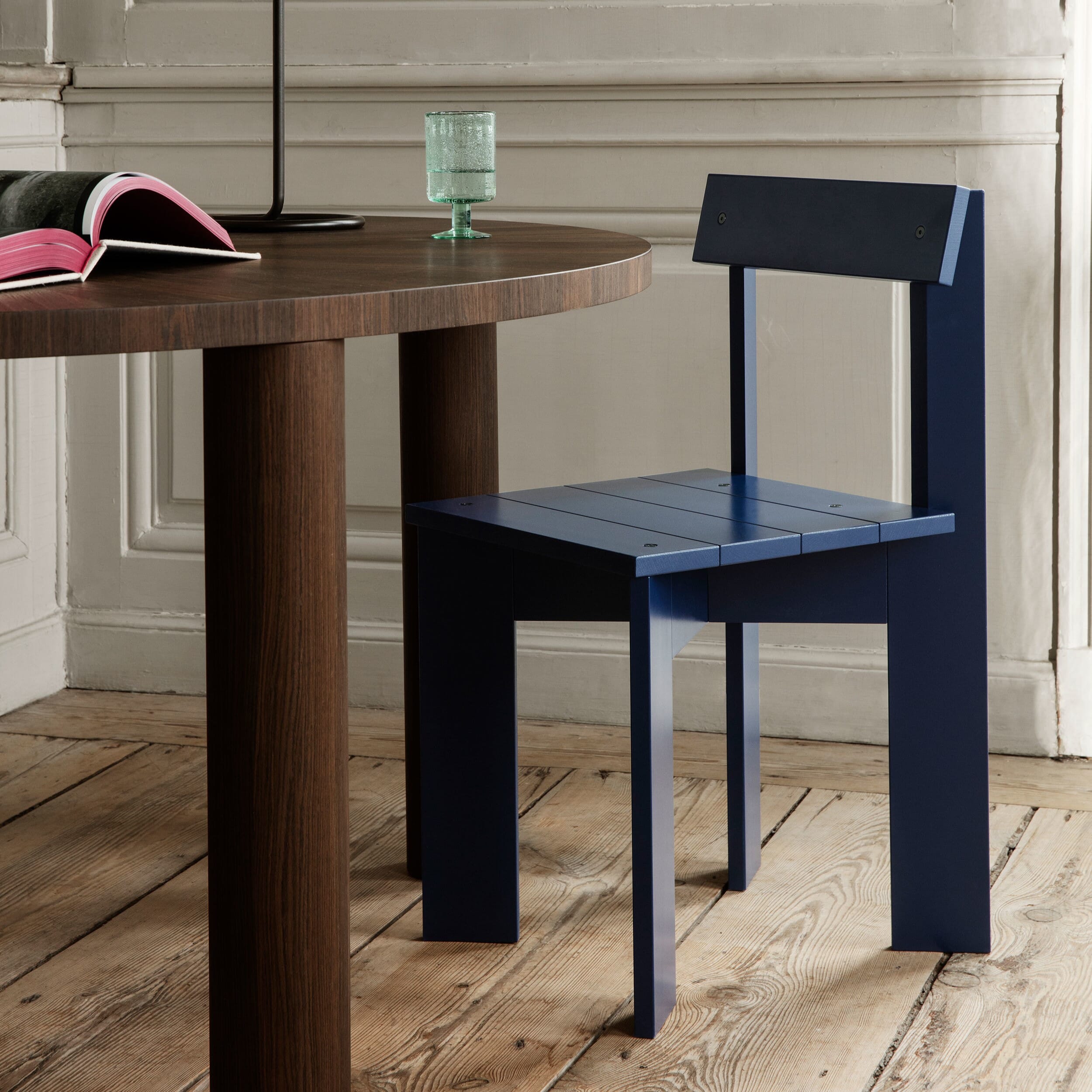 Post Star spisebordet fra Ferm Living er et inspirerende møbelstykke som henter inspirasjon fra brutalismens designprinsipper. Laget av FSC™ Mix-sertifisert tre, står det på fire kraftige, sylindriske ben, og har en vakker bordplate med stjerneformet eikefinérpanel, håndlaget ved hjelp av marquetry-teknikk. Dette bordet er en perfekt blanding av stil og funksjonalitet, ideelt for hyggelige måltider med venner og familie.