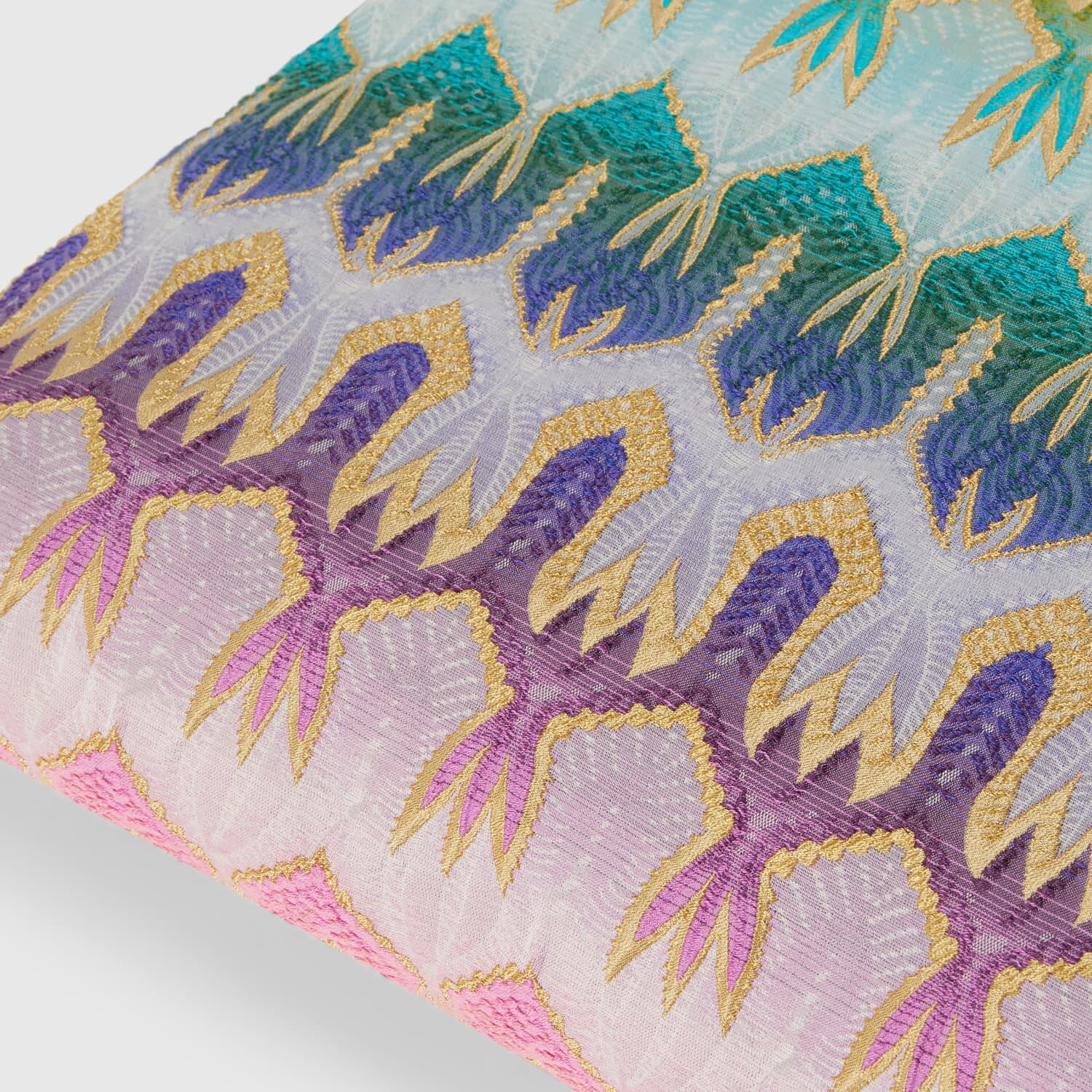 Pasadena-puten fra Missoni Home er en eksklusiv og detaljrik interiørpute som oser av luksus og historisk eleganse.