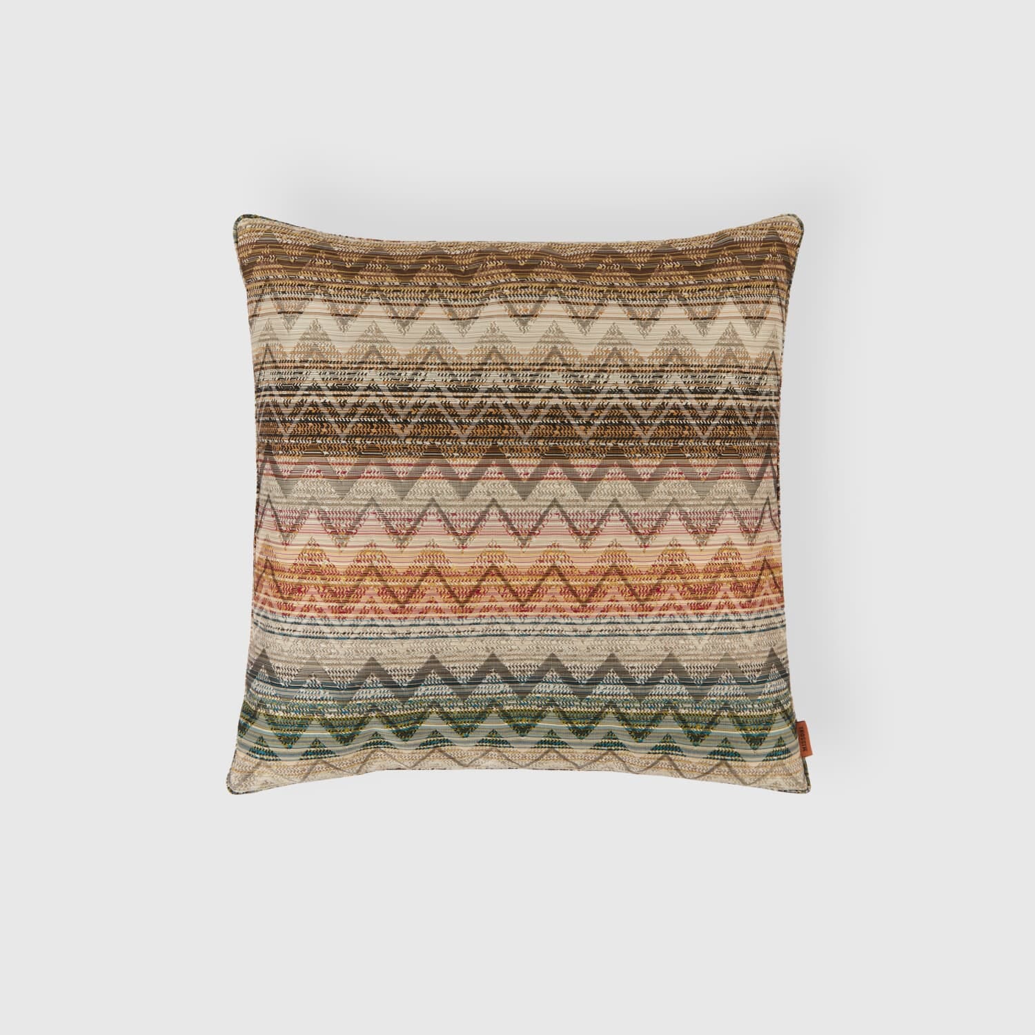 Med sine ikoniske sikksakk-linjer og varme nyanser i bronze multicolor, bringer puten liv og tekstur til både moderne og klassiske rom. Mønsteret er rikt og levende, og hver pute fremstår som unik – et ekte kunstverk i tekstil.
