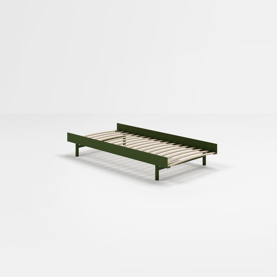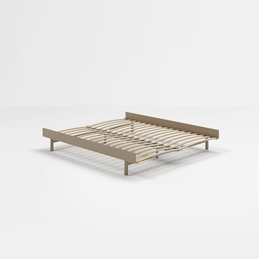 Sengen fra Moebe er en enkel og moderne seng laget av en pulverlakkert stålramme. Bruk den som en enkeltseng på 90 cm på barnerommet, som en 180 cm dobbeltseng på soverommet, eller få den til å passe en hvilken som helst madrass mellom de to.