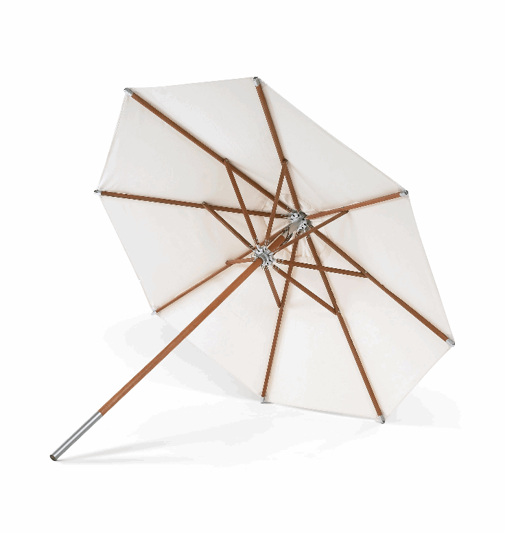 Ta ly for solen og nyt en hyggelig utelunsj under Atlantis-parasoll. Mens stoffet er lærforsterket for å styrke styrken, er foten på trepolen metallforsterket for å beskytte mot slitasje og riper når den plasseres i parasollfoten. Et dobbelthjulssystem gjør det enkelt for alle å brette opp paraplyen.