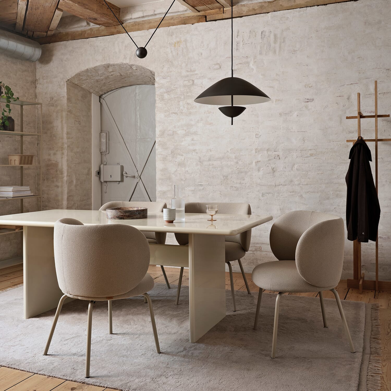 Rink er et bord fra Ferm Living med et elegant uttrykk. Det er laget av bærekraftige materialer og har en arketypisk form med myke, avrundede kanter for et tidløst utseende. Den har en farget, høyglanset lakkfinish og vil garantert være et tidløst stykke i ethvert hjem. Bordet er tilgjengelig i to forskjellige størrelser, slik at du kan finne det som passer perfekt til ditt hjem, og det leveres flatpakket for enkel montering.