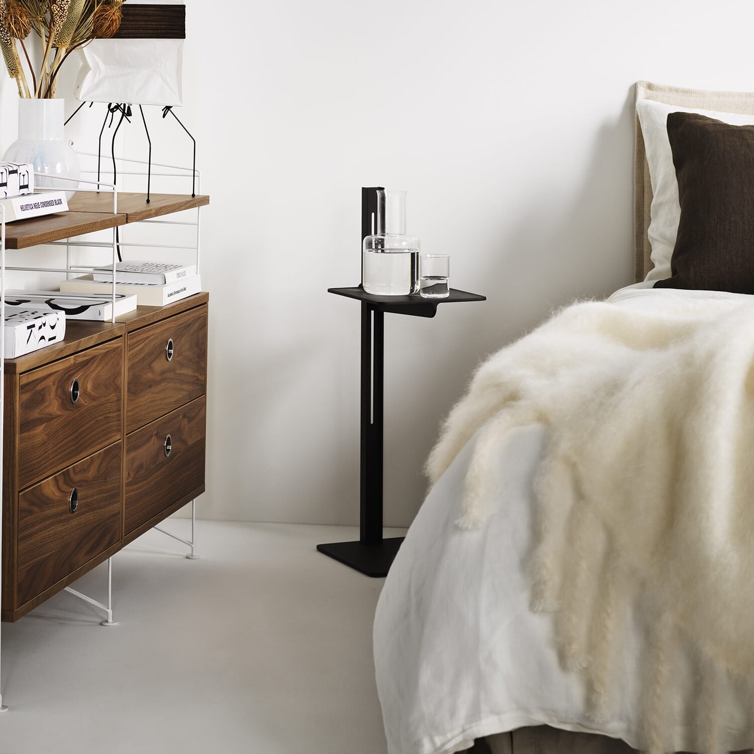 Museum Sidetable er et høydejusterbart bord i aluminium og stål. Den har en rekke bruksområder: lite ekstrabord ved sofaen, nattbord, gangbord med mer.