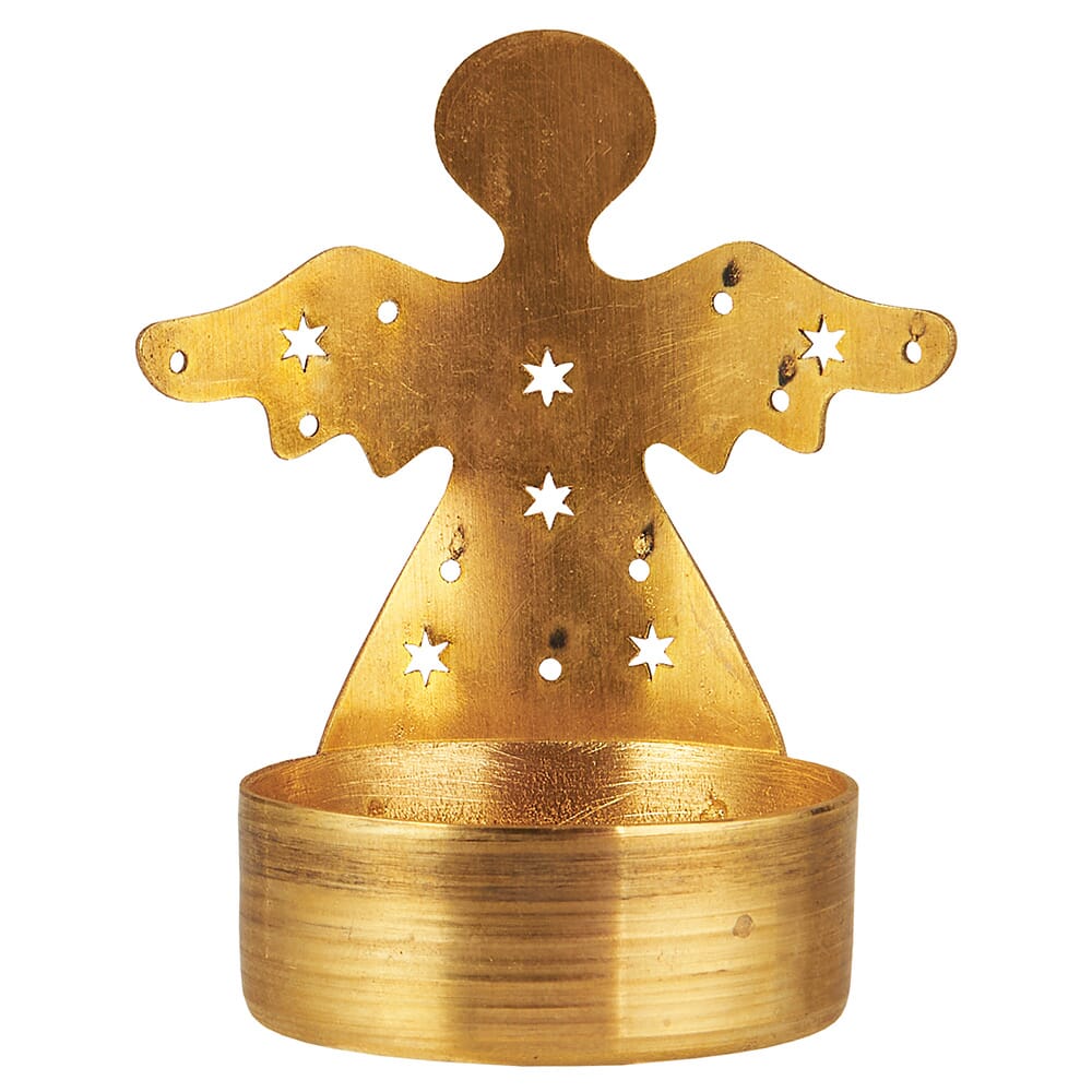 Denne lysestaken for telys er dekorert med en yndig engel. Når telyset tennes, skinner lyset gjennom de små utskårne stjernene på engelen, noe som skaper en flott effekt. Lysestaken er en del av Ib Laursens 'Gloria'-serie av messingpynt, som er laget av ekte messing. Messing er et mykt materiale og krever derfor forsiktig håndtering. Fargen på messing kan ha forskjellige nyanser, og den kan endre farge etter berøring samt ved påvirkning av luft, noe som bidrar til å gi det en vakker patina. Pussmiddel for messing kan brukes til rengjøring, men det bør brukes med forsiktighet.