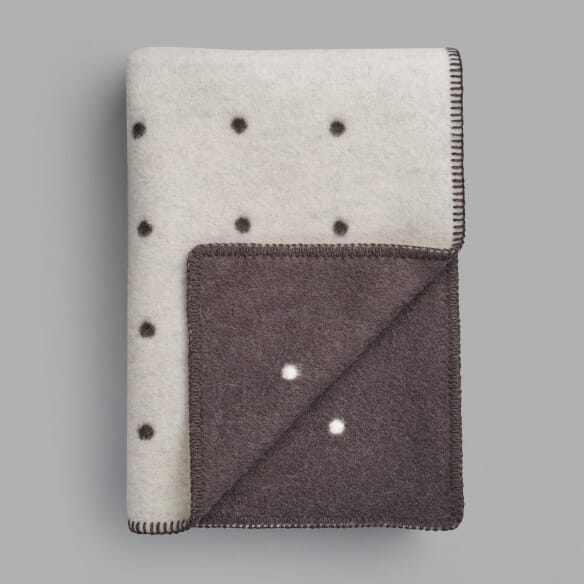 Pastille følger en Røros Tweed-tradisjon med nordiske grafikkelementer. Det åpne rutenettet med kontrastprikker etterlater et rent og strukturert inntrykk.