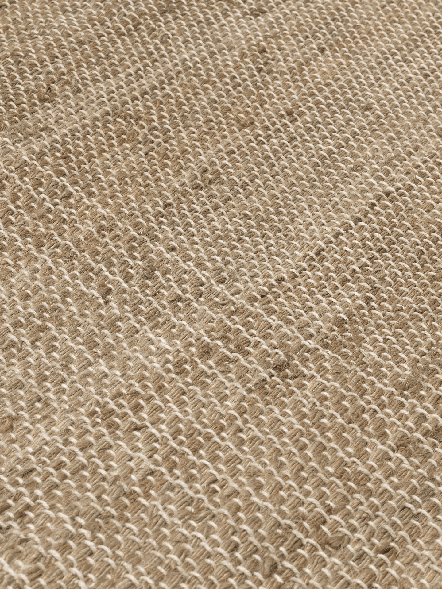 Laget av naturlig jute, henger teppet fra en trestang som et moderne kunstverk, som er behagelig kontrastert av det bekymringsløse uttrykket til frynsene nederst.