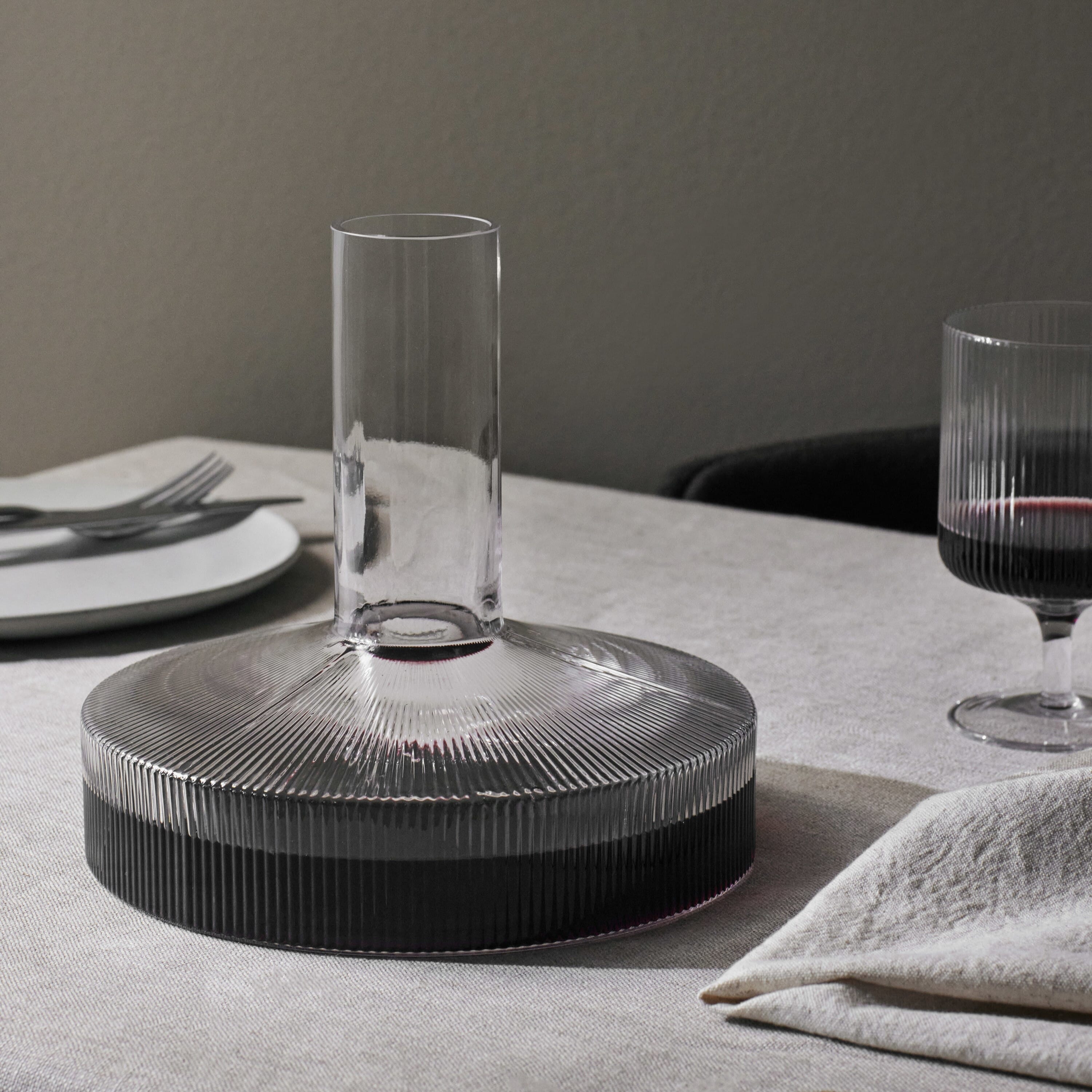 Denne vakre vinkaraffelen fra Ferm Living er mer enn bare en praktisk måte å servere vin på – den er en kunstnerisk uttrykk av nytelse. Vinkaraffelen er håndlaget, munnblåst med kjærlighet og formet med en moderne bølgedesign. Den har en nøyaktig form med en sjenerøs størrelse perfekt til alle typer vin. Skjenk opp til en liter av din favorittvin, eller la den omfavne større mengder. Enhver anledning blir mer spesiell med denne elegante vinkaraffelen.