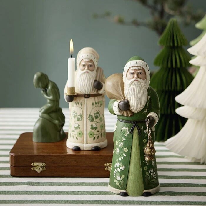 Vakker Santa i rustikk stil fra danske Bungalow. Santa er håndmalt i nydelige avstemte farger og mønstre, som passer perfekt til det gylne metallet. Santa vil bidra til julestemning og nostalgi uansett om du plasserer han på vinduskarmen, på julebordet eller i hyllen.