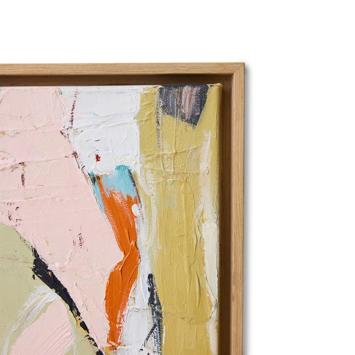 Malt på linlerret med akrylmaling og innrammet i tre og metall, fremstår dette som et solid og varig kunstverk med en taktil overflate som fremhever den håndlagde karakteren. Med sine kompakte mål på 43 × 53 cm er Colour Compliment perfekt for mindre veggflater – enten alene som et blikkfang, eller som del av en bildevegg der den kan spille sammen med andre kunstverk.