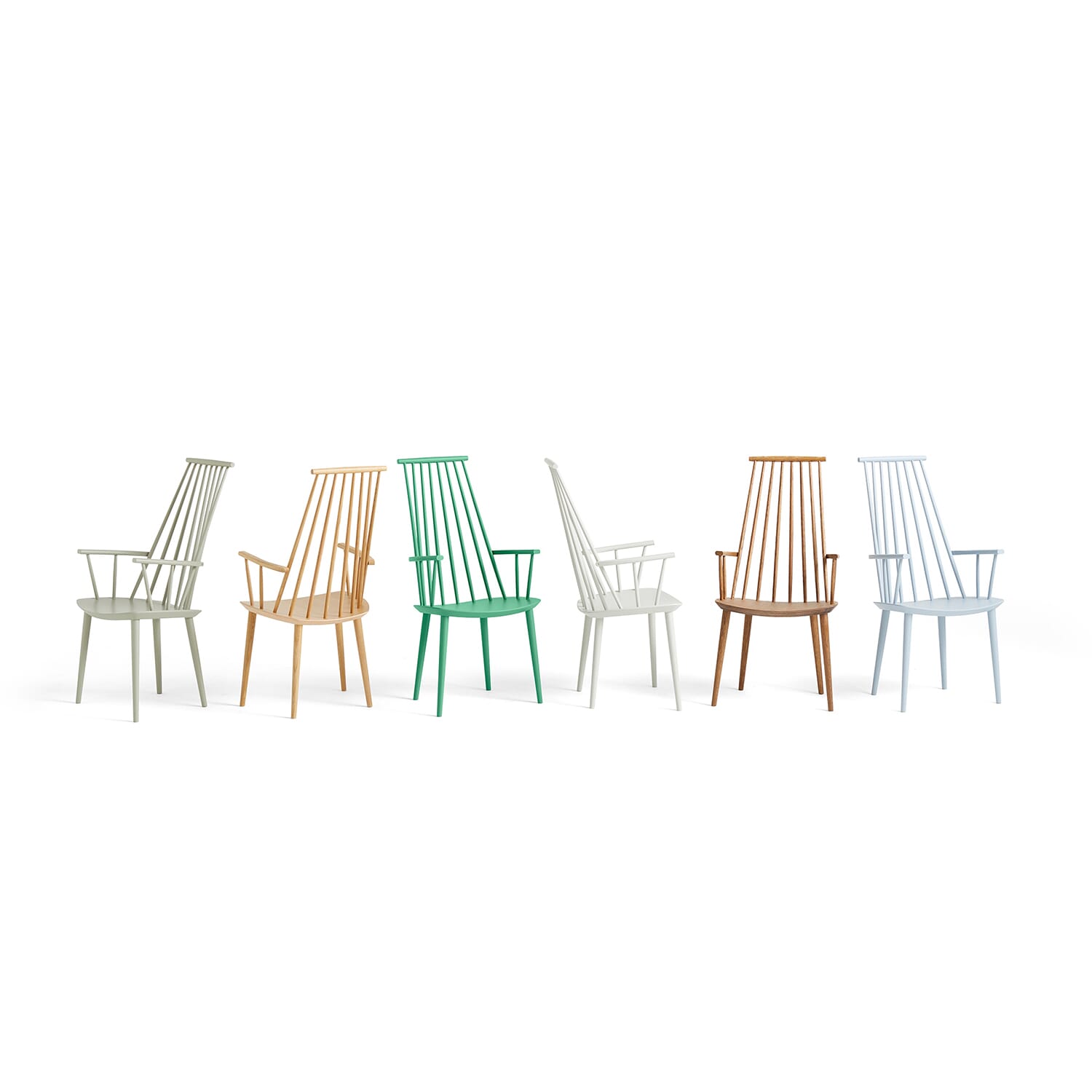 Med komforten til en lenestol og funksjonaliteten til en spisestol, er HAYs reproduksjon av Poul M. Volthers J110 både estetisk og praktisk. Lange stenger bak og buede armlener skaper et innbydende uttrykk. Laget i massiv eik eller bøk og tilgjengelig i en rekke oljede, naturlige eller fargede utførelser.