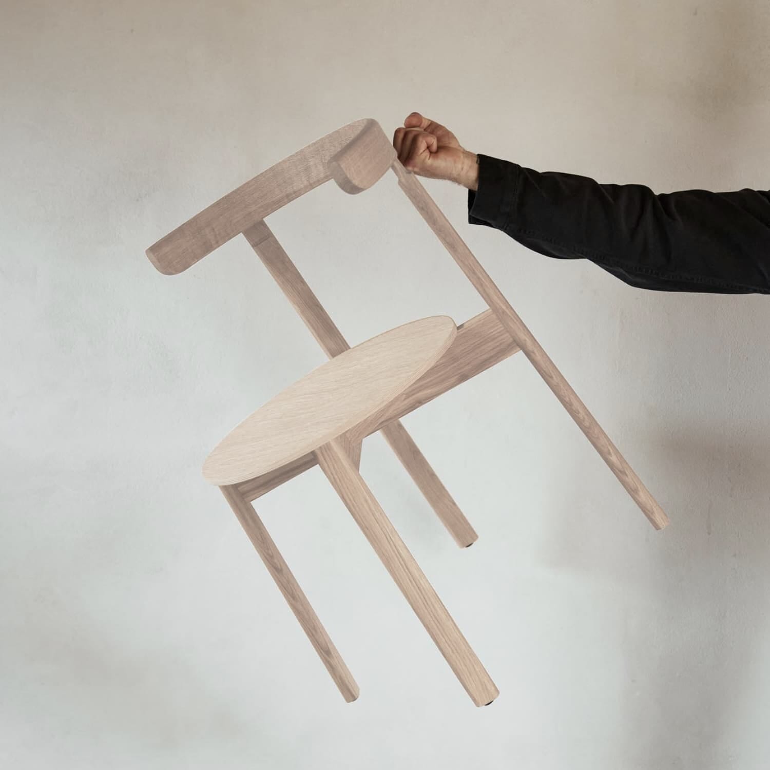 Lunar Chair i hvitoljet eik er en allsidig spisestol designet av Jonas Herman i Herman Studio.