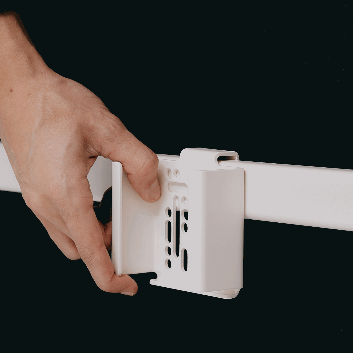 Festet er laget i pulverlakkert stål med matt finish og Pedestals karakteristiske signaturmønster, som gir både styrke og et sofistikert preg. Den er kompatibel med alle Pedestal-stativ (unntatt Viva) og passer Apple TV fra versjon 2 og oppover. Merk at Apple TV 4K, som er mindre enn tidligere modeller, kan sitte litt løsere, men monteres fortsatt trygt.